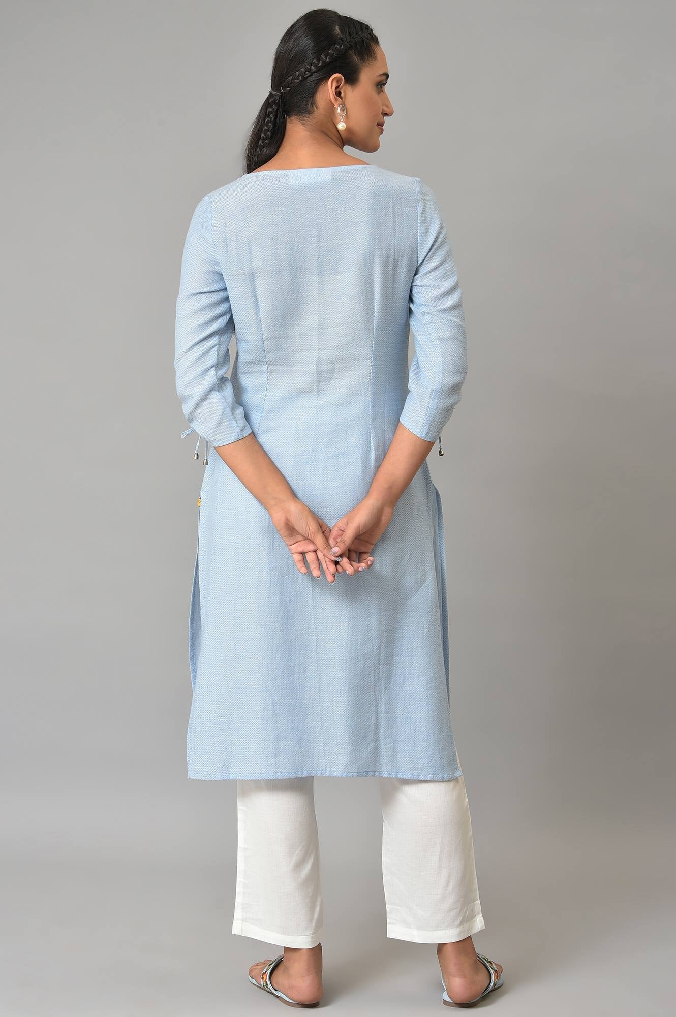 This Straight kurta Features A Delicate Dori Embroidery In Pristine White Thread And White Matt Sequins. It Also Has A Tunnel Detail In The Sleeves That Adds Delicacy To The Look.
