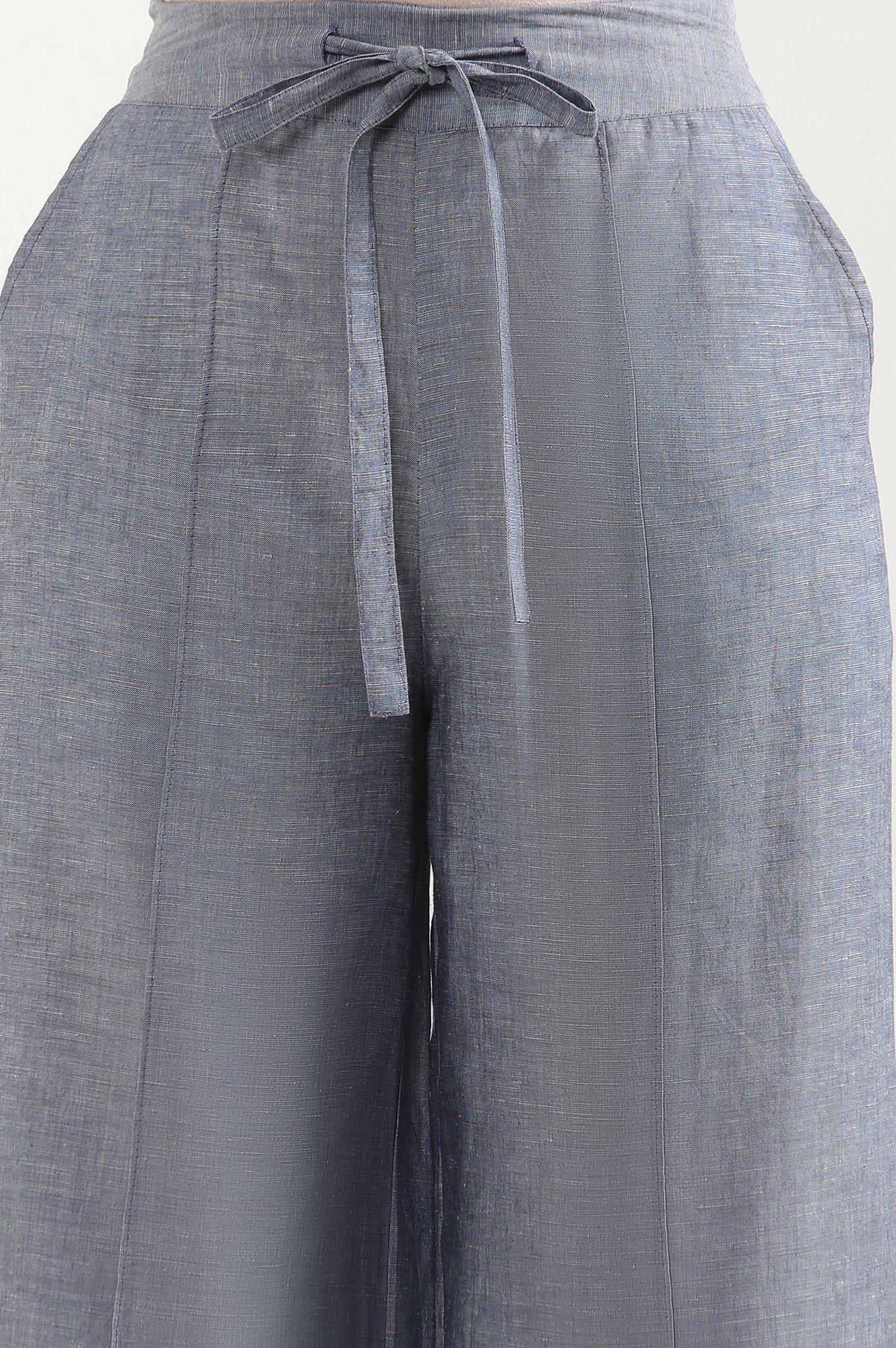 These pintuck denim flared pants feature a functional tie detail in the front. These pants have two side seam pockets to keep youe essentials. The garment goes thru an additional denim wash to give it extra softness and a fluid fall that makes it perfect for and any casual occasion or all-day wear.