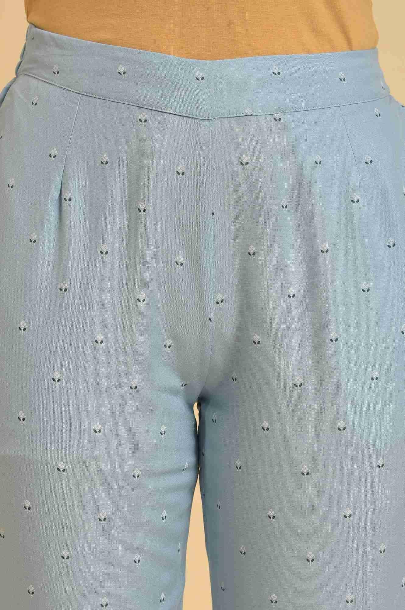 Get Ready For The Day Event In This Summer Season With This Pretty And Smoothing Blue kurta Set. The Set Has Glitter Printed A-Line kurta In Round Neck. It Is Paired With Printed Pants And Ecru Glitter Printed Dupatta.