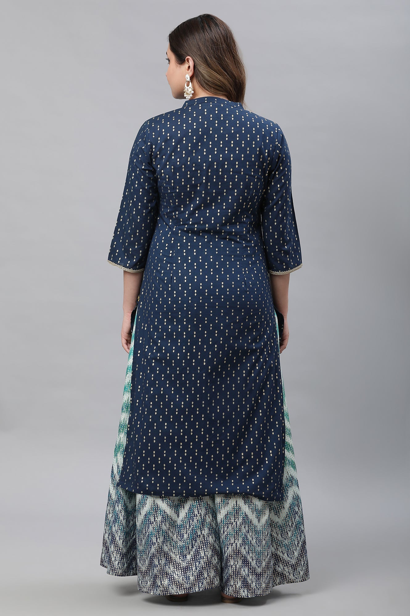 Blue Ikat Foil Printed Embellished Kurta
