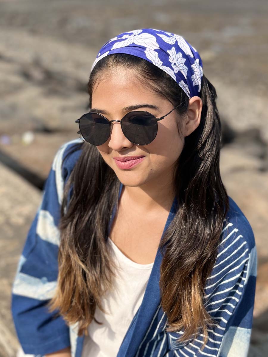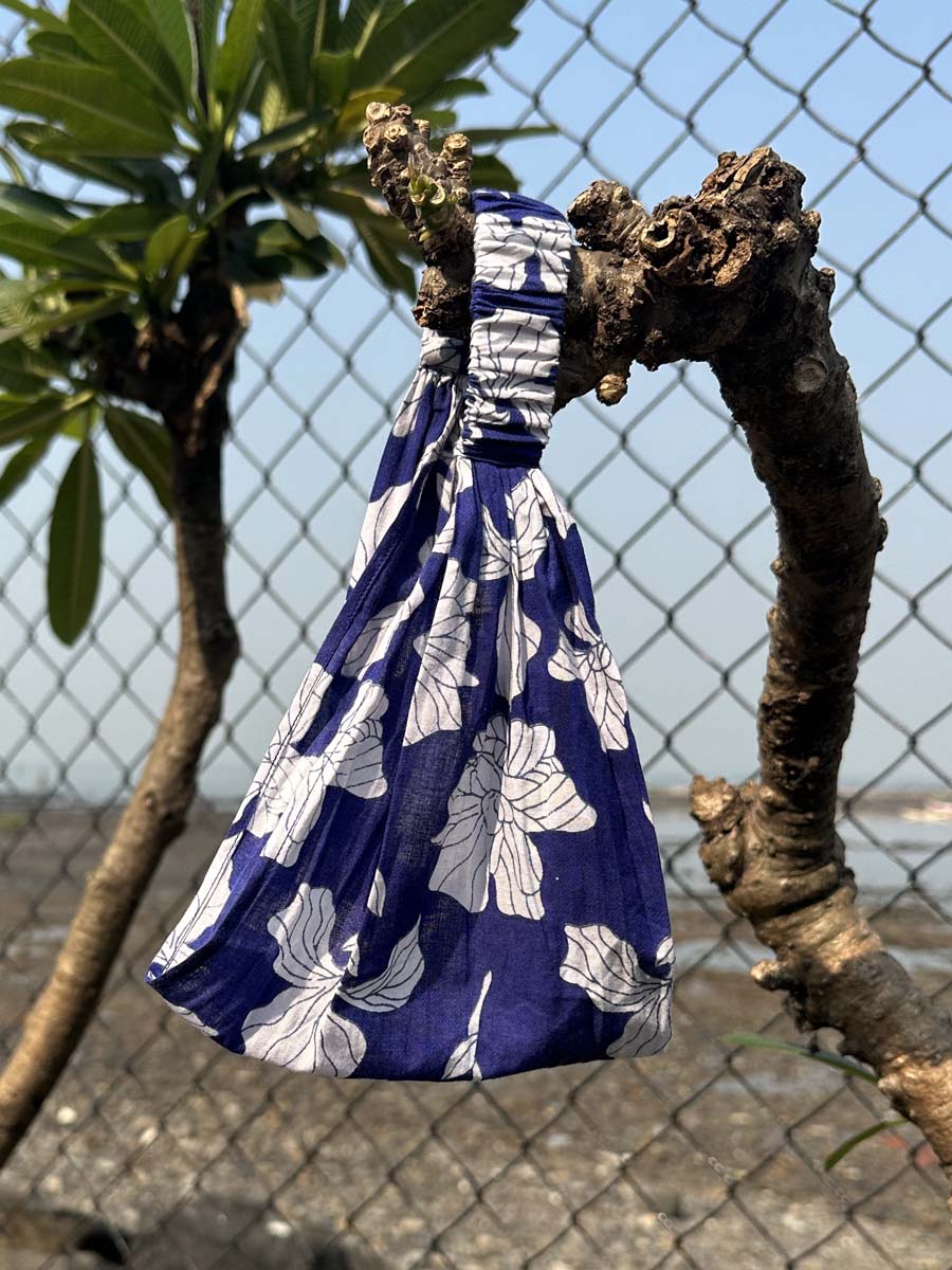Blue Peony Block Printed Cotton Hair Band