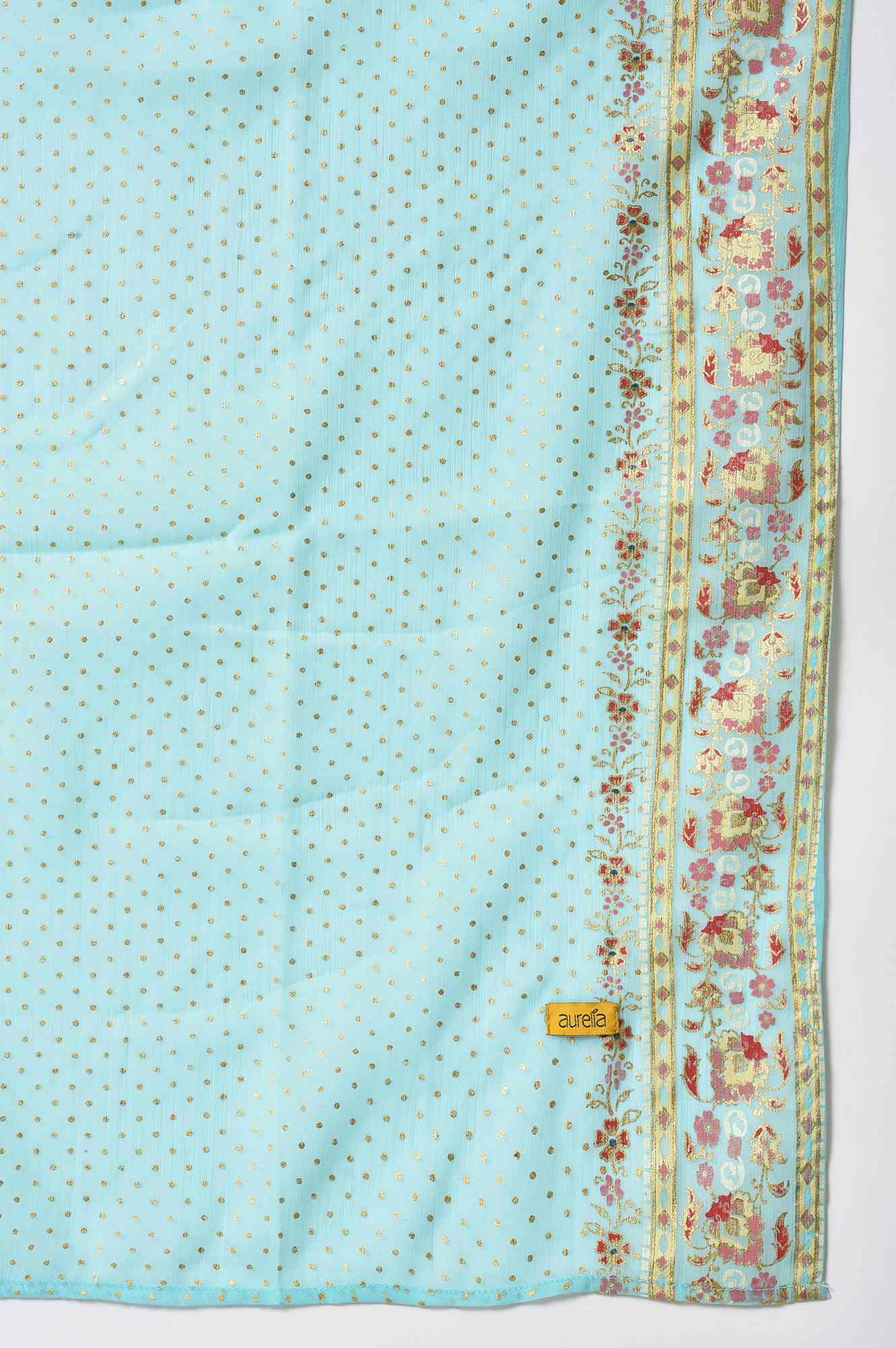 Feel astounding in this pink georgette printed dupatta that has half and half floral jaal with half drop dots, accentuated with gold foil. This is one of the must have pieces for your wardrobe.