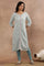 Straight Fit Pale Blue Cotton Dobby Kurta In Round Neck With V Cut Neckline. It Is Paired With Cotton Jersey Lycra Tights.