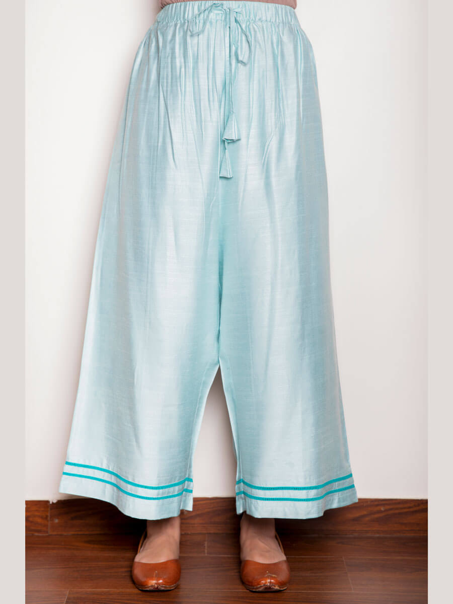 A comfortable palazzo pant handcrafted in modal silk using traditional hand block printing; perfect for pairing with long shirts, kurtas, and kaftans. Be at your comfortable and stylish best!