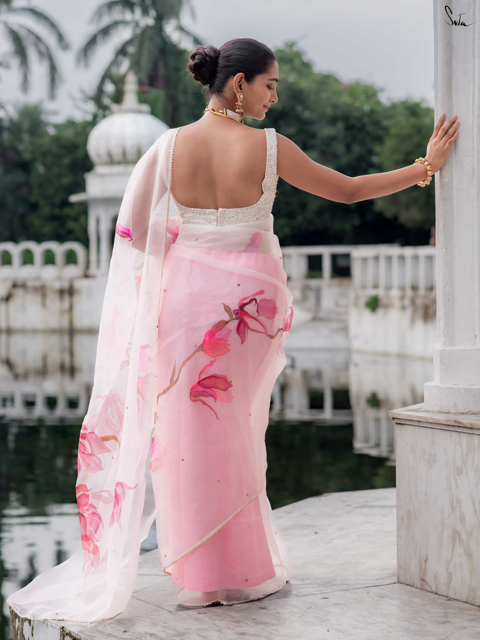Light as air and translucent like a rainbow, organza silk is a fabric that exudes delicate grandeur. Woven with twisted silk yarn on the warp as well as the weft, this fabric is hailed for its slight transparency and its slightly stiff and yet fluid texture. The slight sheen adds to its charisma, making it the perfect saree to drape for both festive and formal occasions.