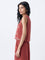 Bombay Paisley’s rust top captures the spirit of effortless bohemia through intricate embroidered motifs and an easy tie-up front. Framed with a V-neck and sleeveless cut, it blends structure with flow, making it a versatile piece for casual coffee runs or relaxed festive evenings. The cotton-rich fabric ensures breathability, letting style and comfort move hand in hand.