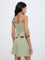 This sage top from Bombay Paisley is fashioned with cross-stitch embroidery on a breezy peplum silhouette. Woven from a sumptuous cotton-linen blend, it’s finished with a square neck, adjustable shoulder straps, and a smocked back for a flattering fit.