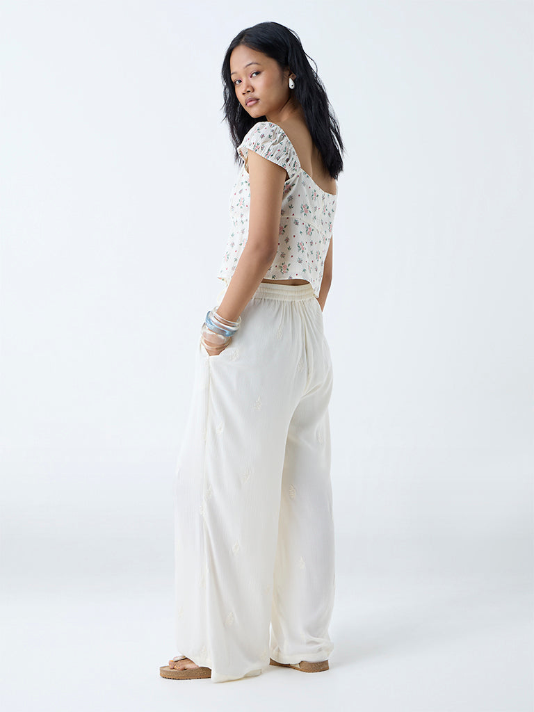 Bombay Paisley White Floral Design Milkmaid Cotton Top