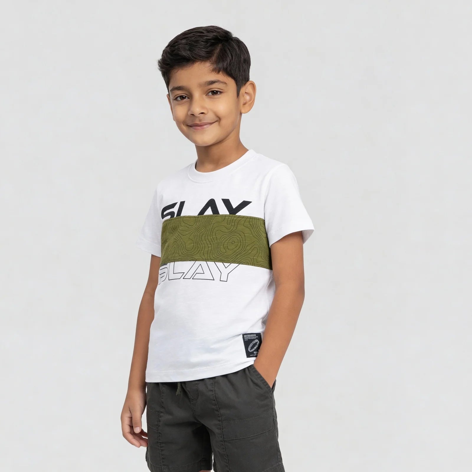 Introducing the Boys Cotton Cut and Sew Weekend T-Shirt, crafted from high-quality cotton for ultimate comfort. The unique cut and sew pattern adds a stylish flair, making it perfect for casual outings.