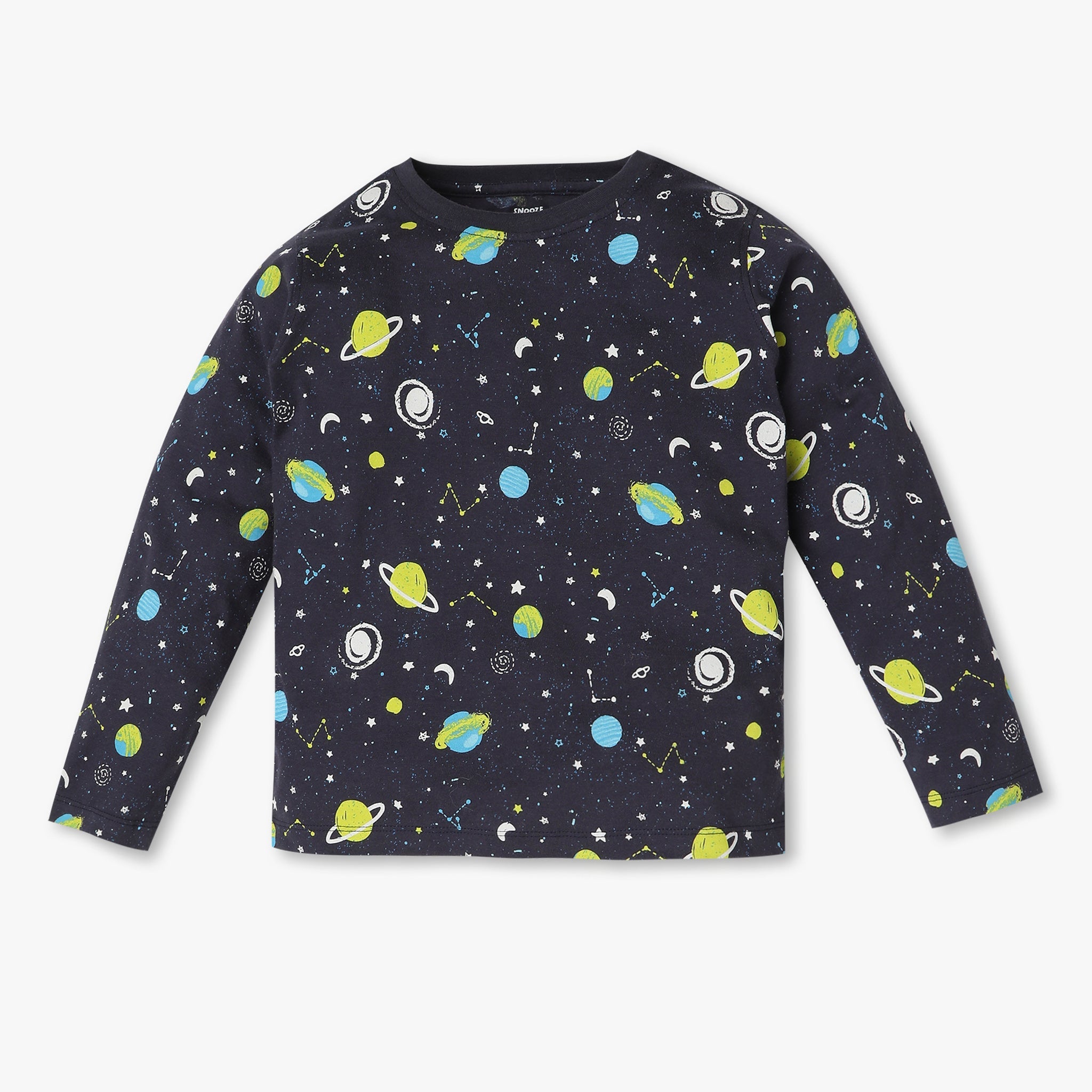 These printed pattern t-shirt with trackpant sleepwear set has crew neck and full sleeve. Made from cotton, your kid's feel comfortable wearing the product.