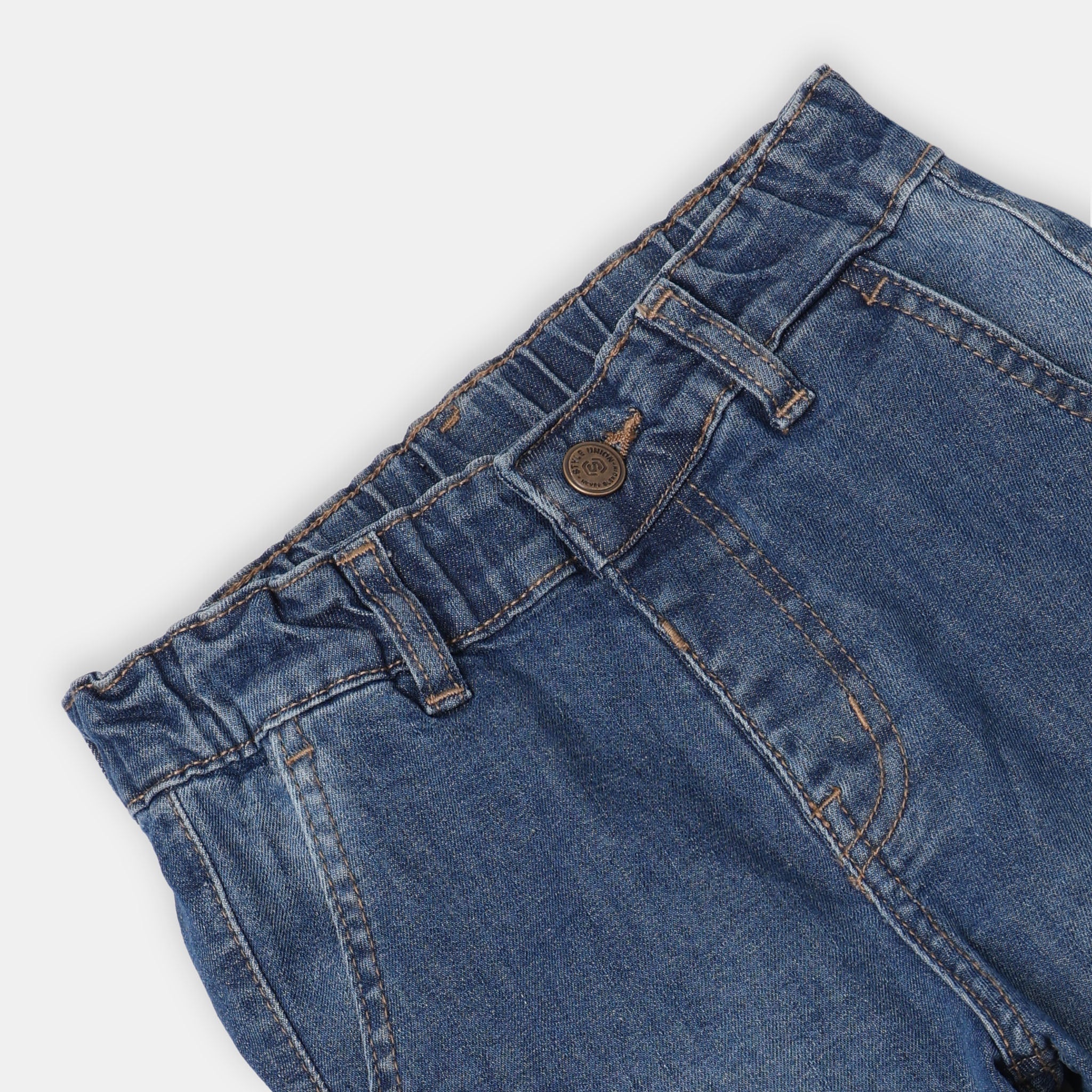These denim jogger theme, cut and sew pattern regular fit joggers has mid rise waist. Made from cotton, your kid's feel comfortable wearing the product.