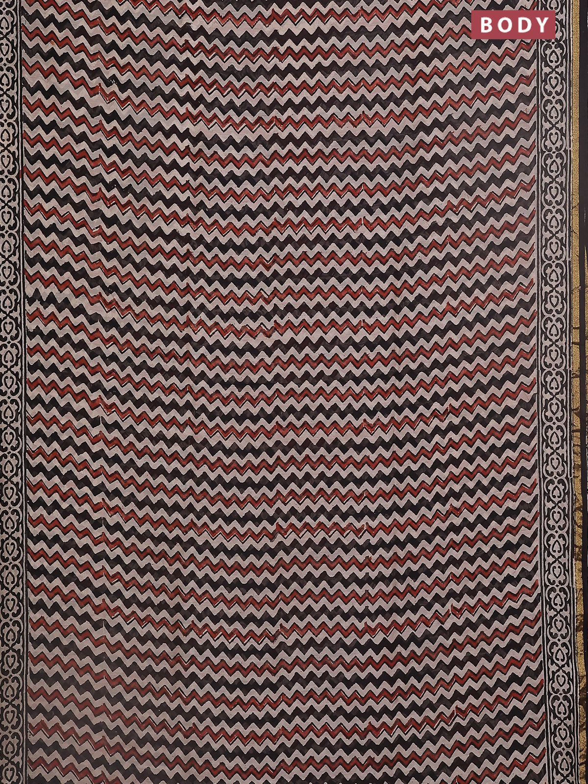 Chanderi bagru saree beige and black with allover zig zag prints and small zari woven border