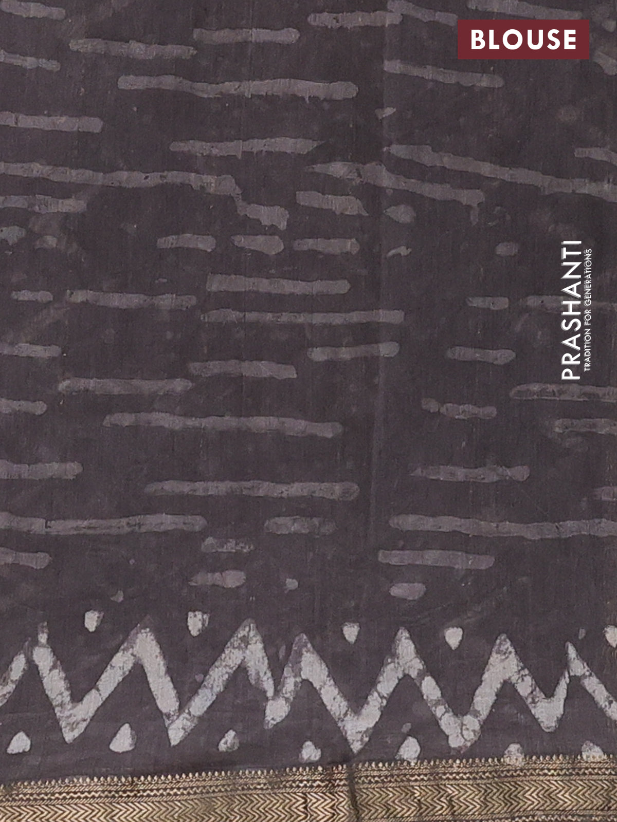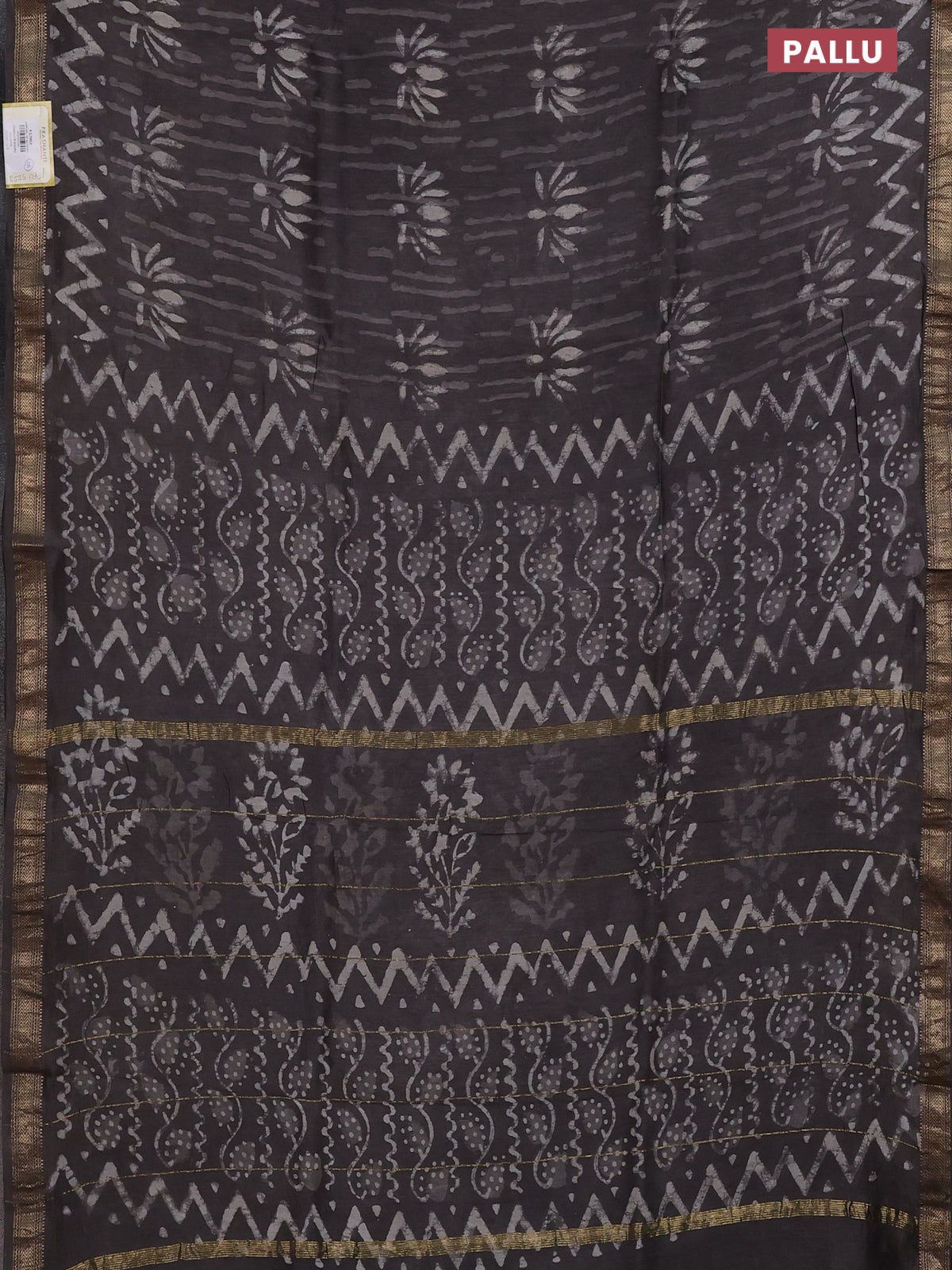 Chanderi bagru saree grey with allover dabu prints and mageshwari border