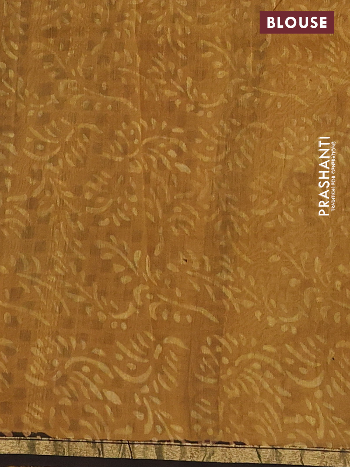 Chanderi bagru saree mustard shade and black with allover kalamkari prints and small zari woven border