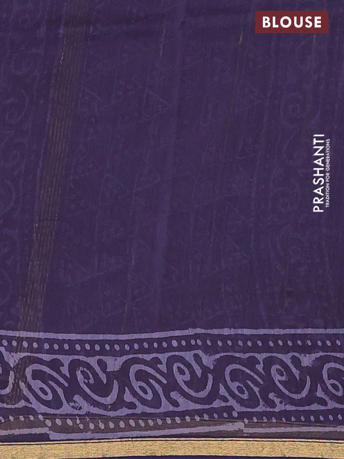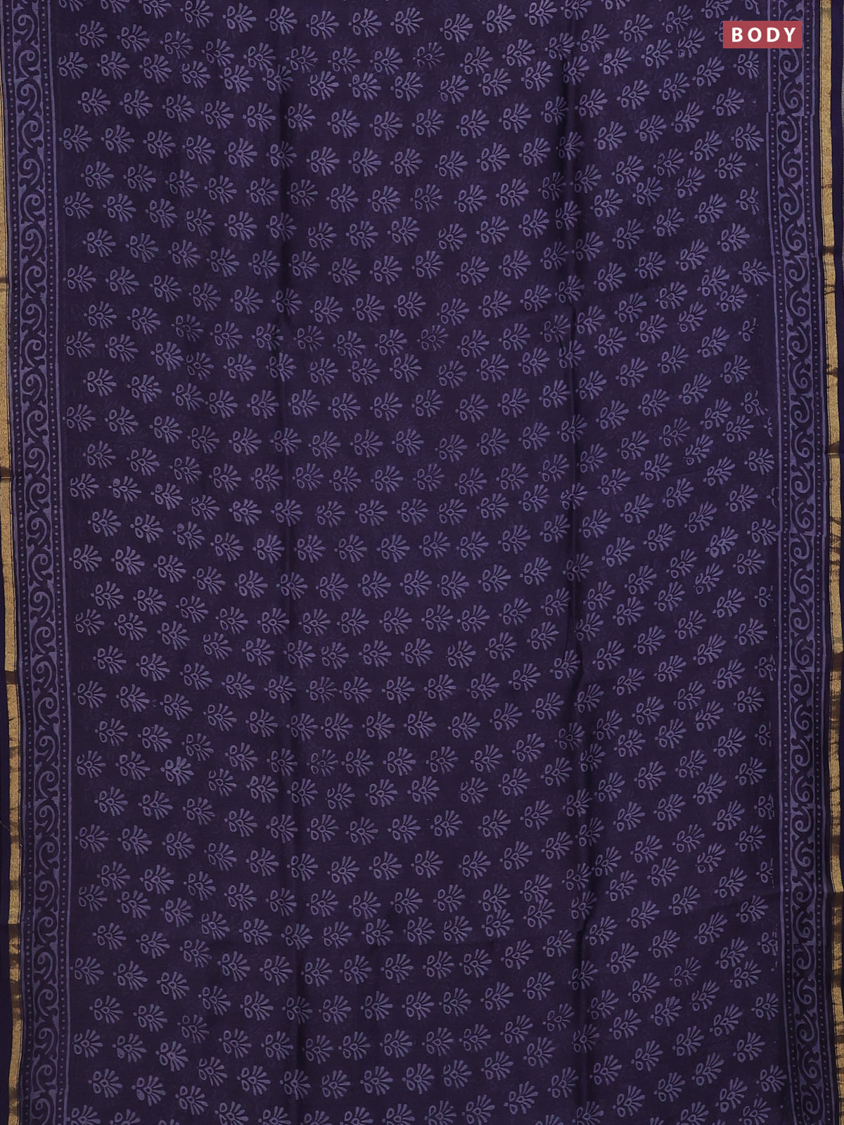 Chanderi bagru saree navy blue with allover butta prints and small zari woven border