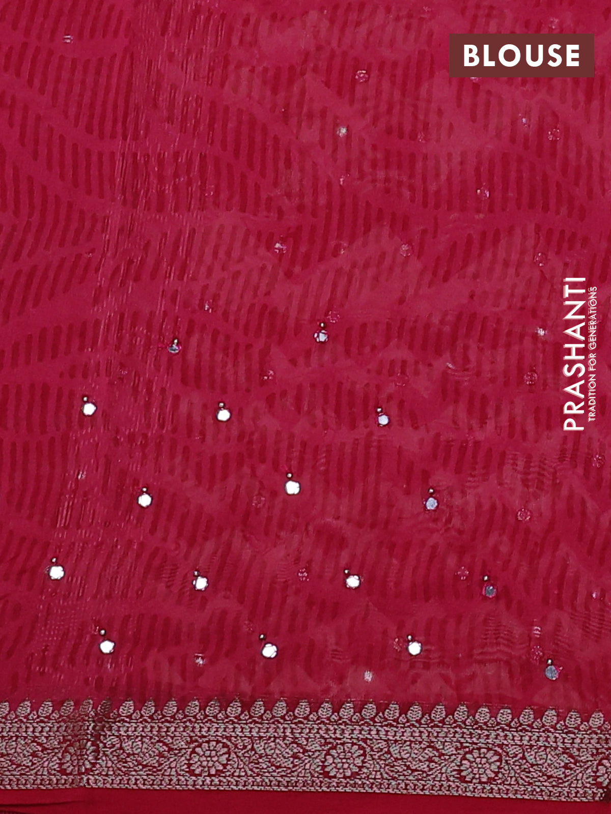 Chanderi silk cotton saree pink and beige with allover zig zag prints & mirror work and woven border