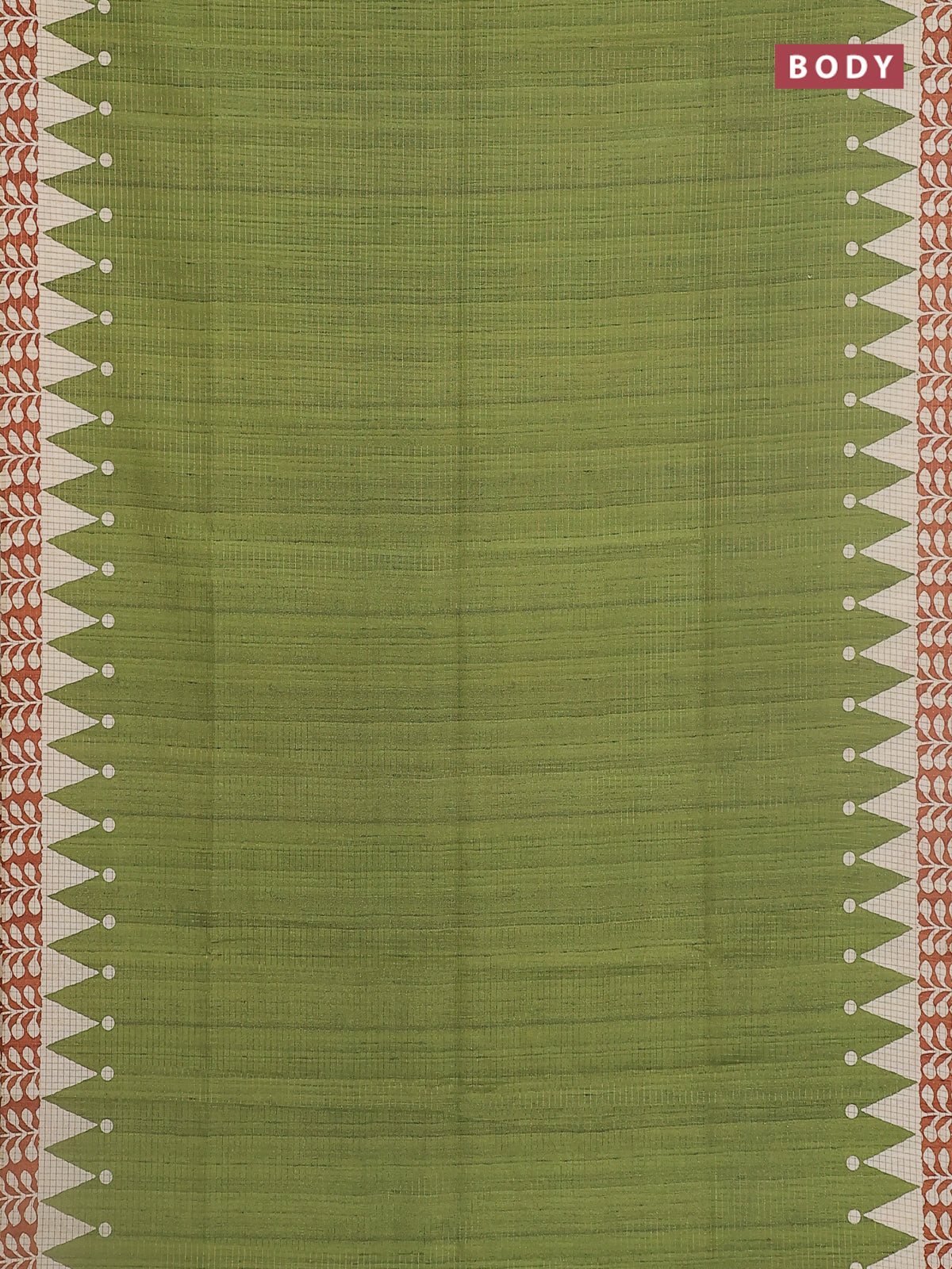 Chappa saree green and rust shade with allover zari checked pattern and printed pallu