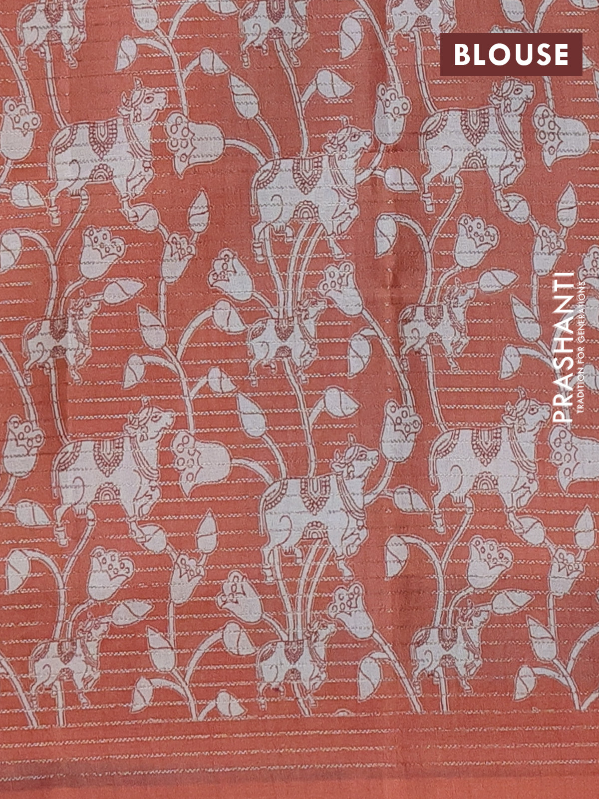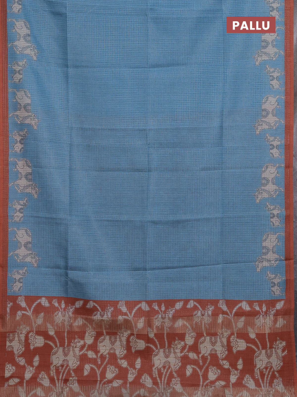 Chappa saree light blue and rust shade with allover small zari checked pattern and pichwai printed pallu