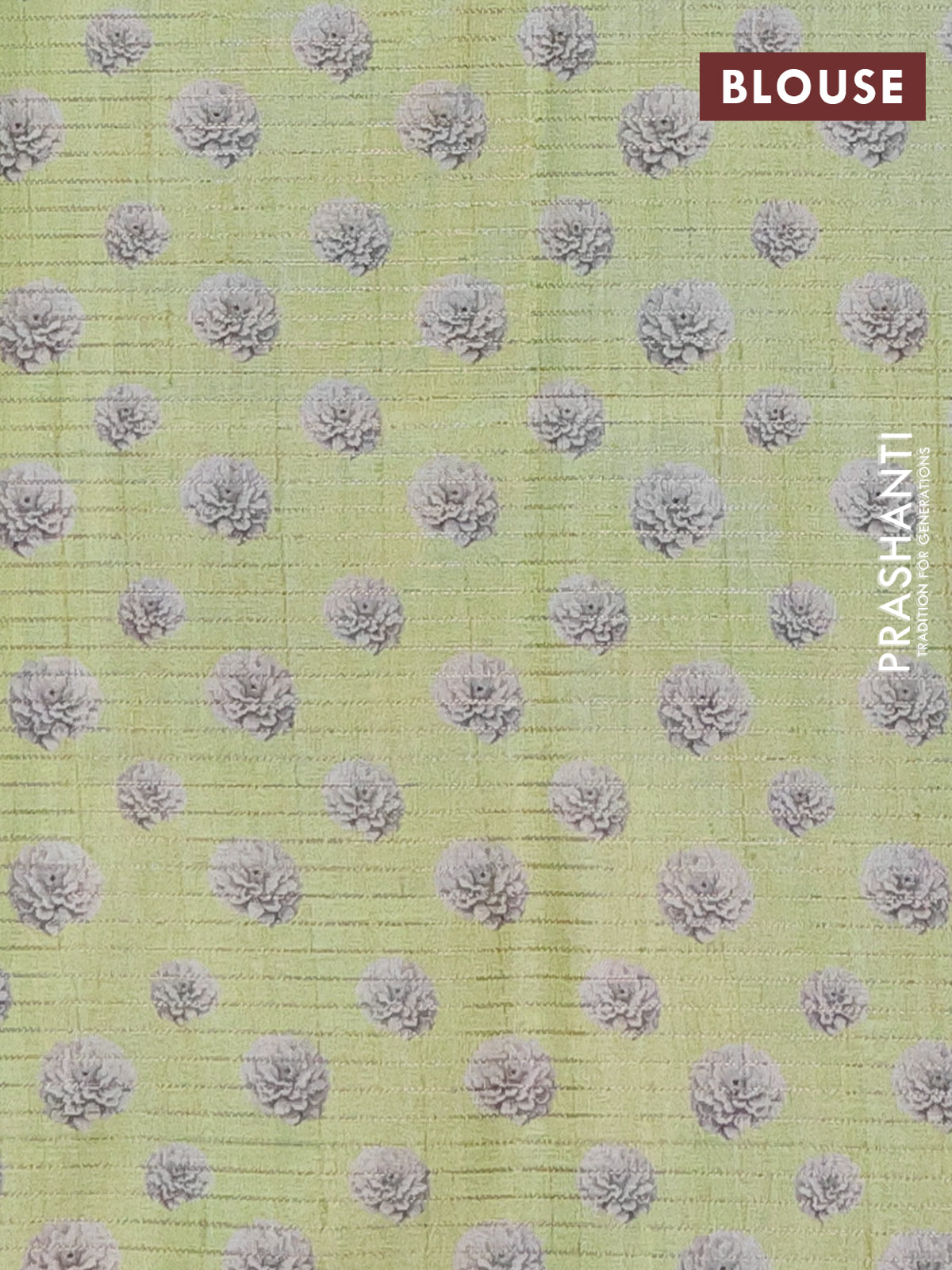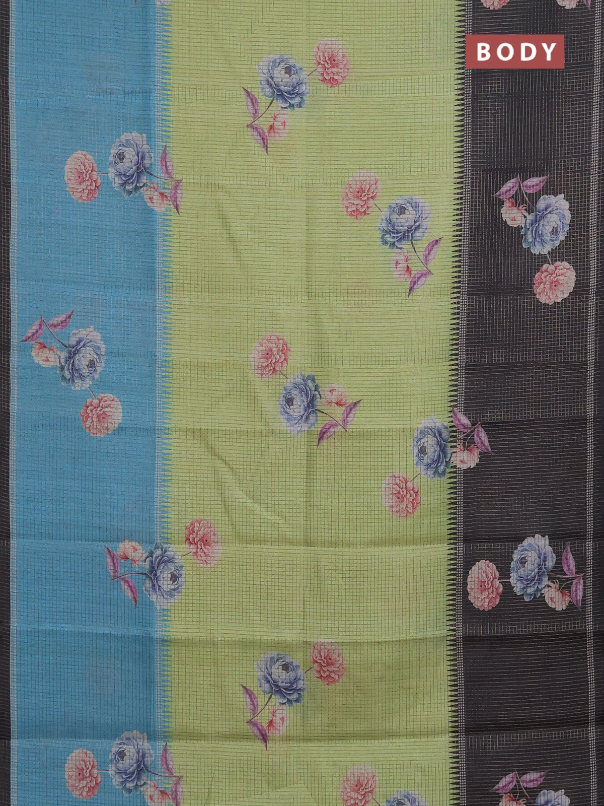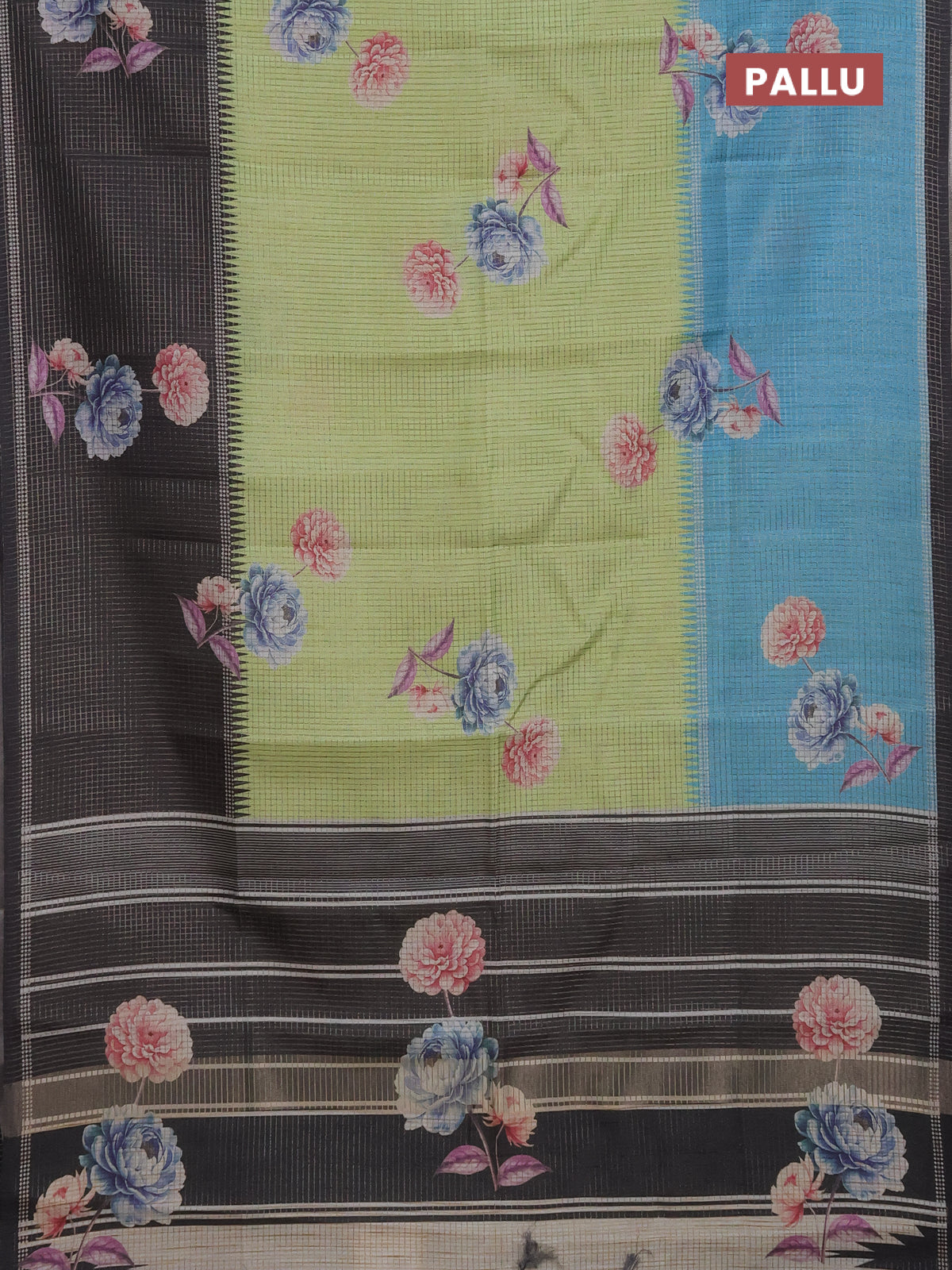 Chappa saree light green and black with allover small zari checked pattern & floral digital prints and ganga jamuna border