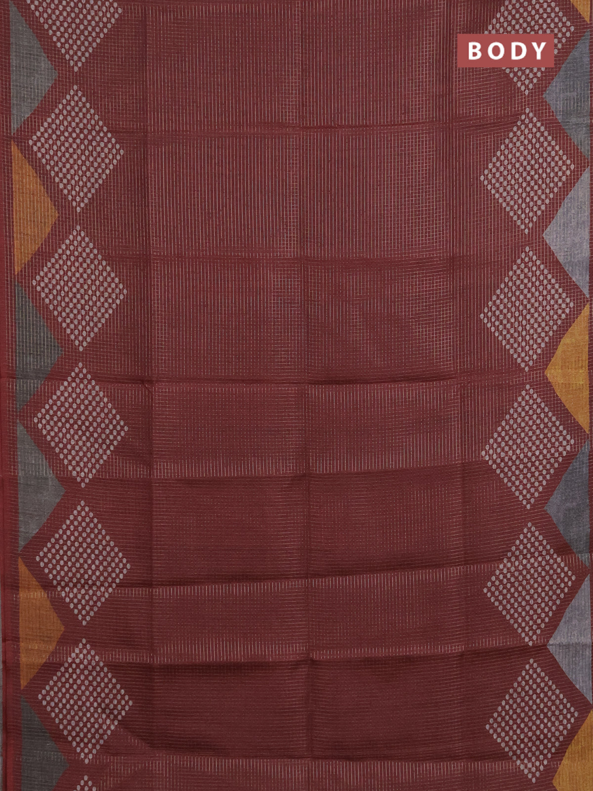 Chappa saree maroon and grey with allover small zari checked pattern and printed border