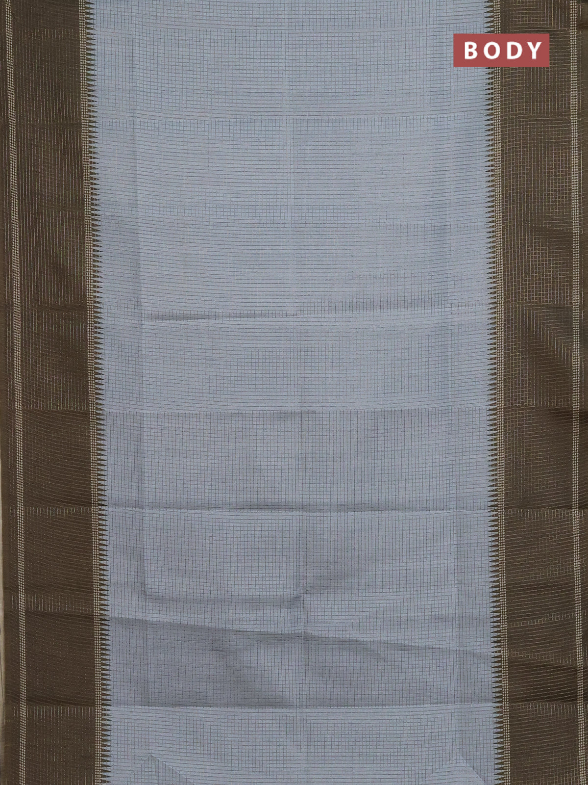 Chappa saree pastel grey and dark sap green with allover small zari checked pattern and temple design zari woven border