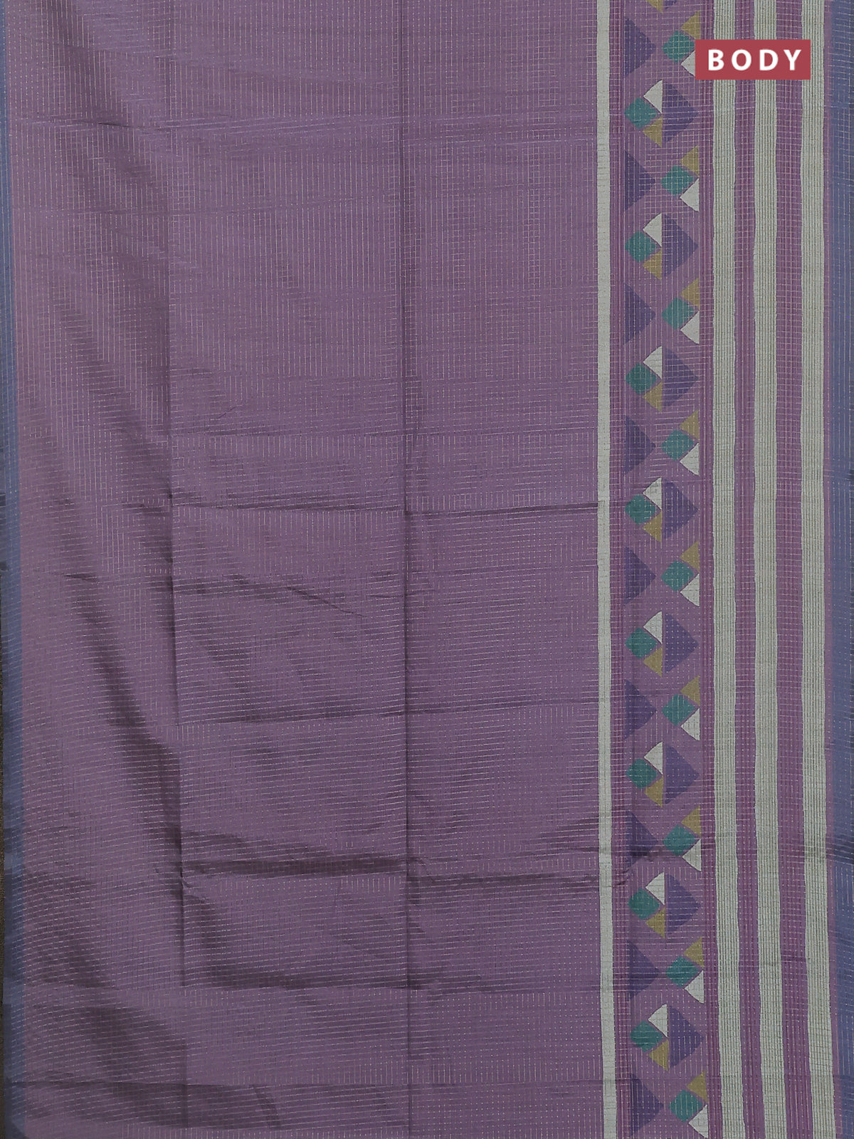 Chappa saree pastel purple and grey with allover zari checked pattern and long geometric printed border