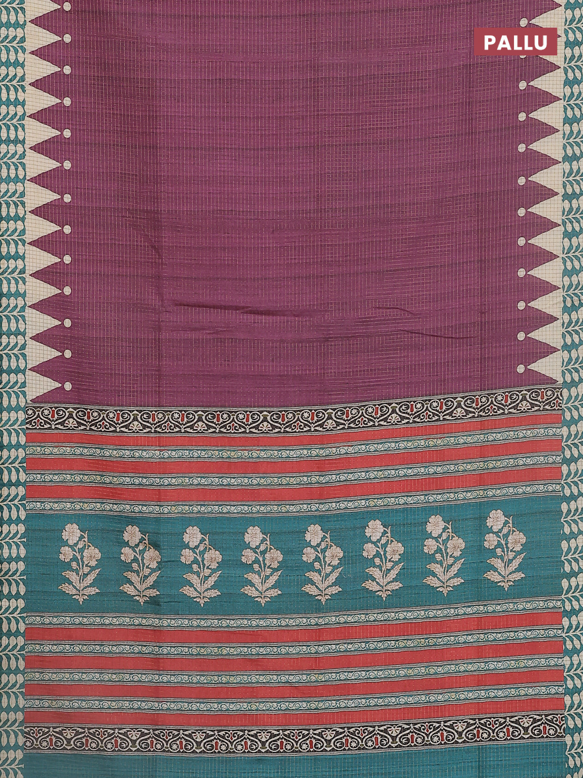 Chappa saree wine shade and teal green with allover zari checked pattern and printed pallu
