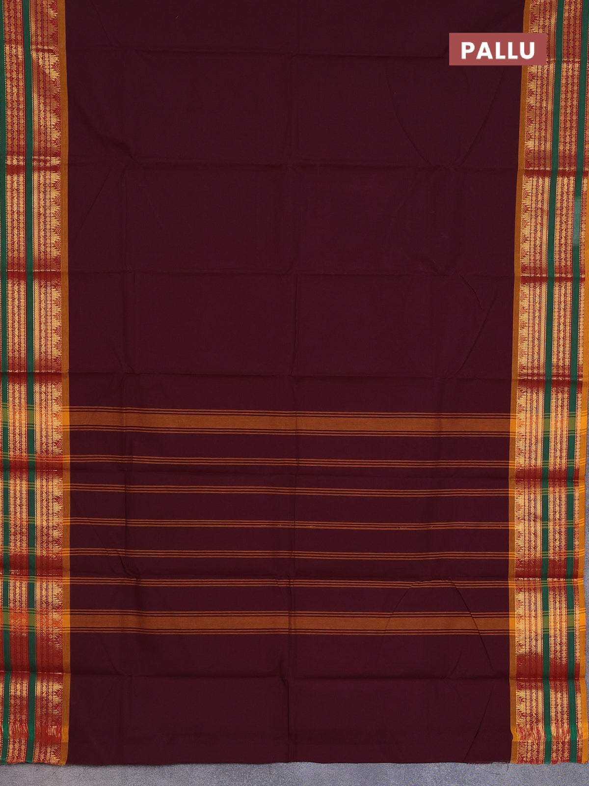 Chettinad cotton saree brown and mustard yellow with thread woven buttas and zari woven border