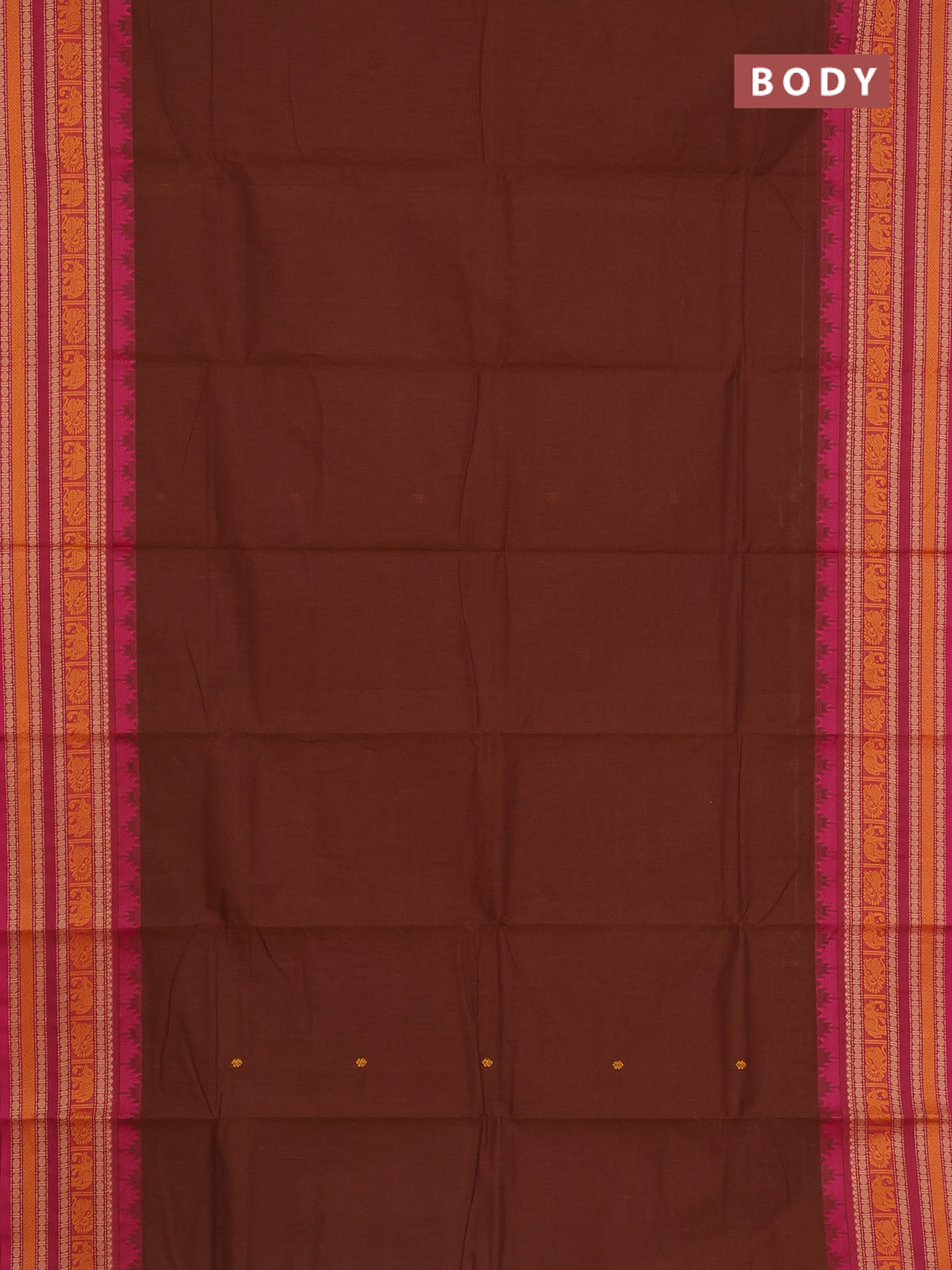 Chettinad cotton saree brown and pink with thread woven buttas and thread woven border