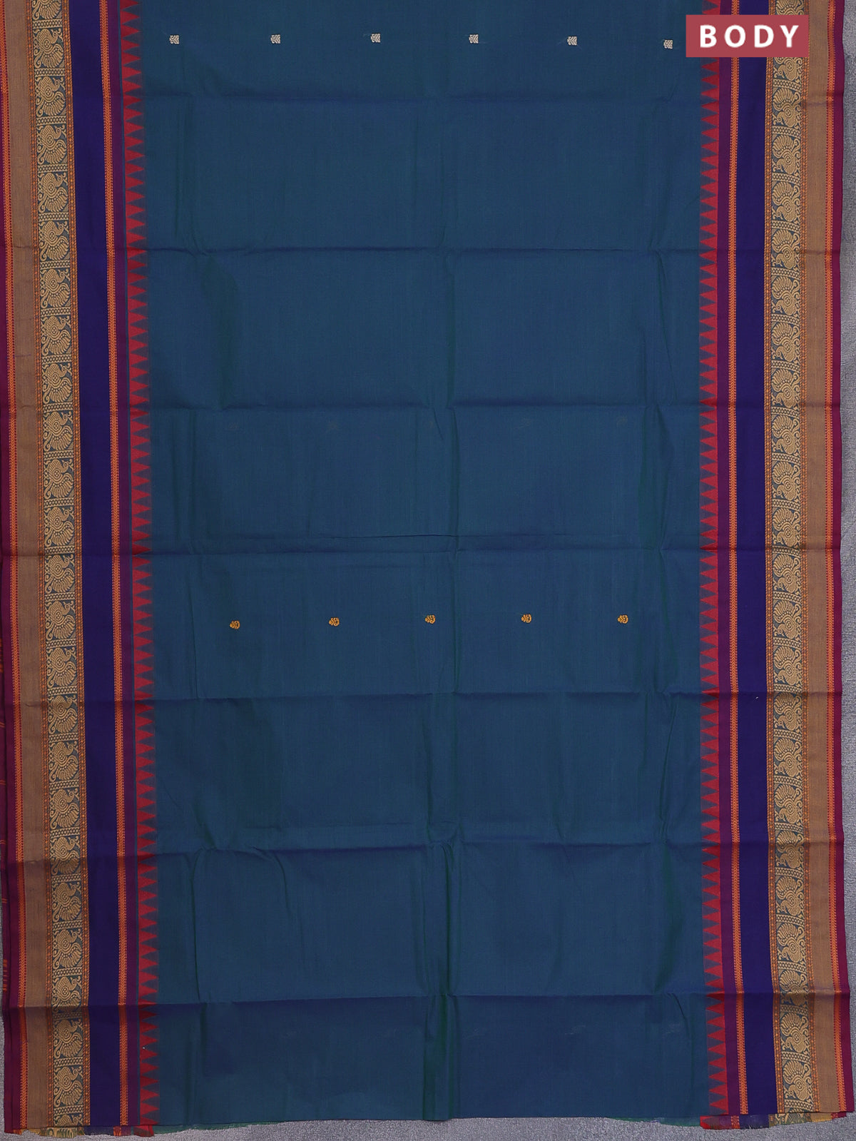 Chettinad cotton saree dual shade of bluish green and dual shade of maroon with thread woven buttas and long rettapet thread woven border