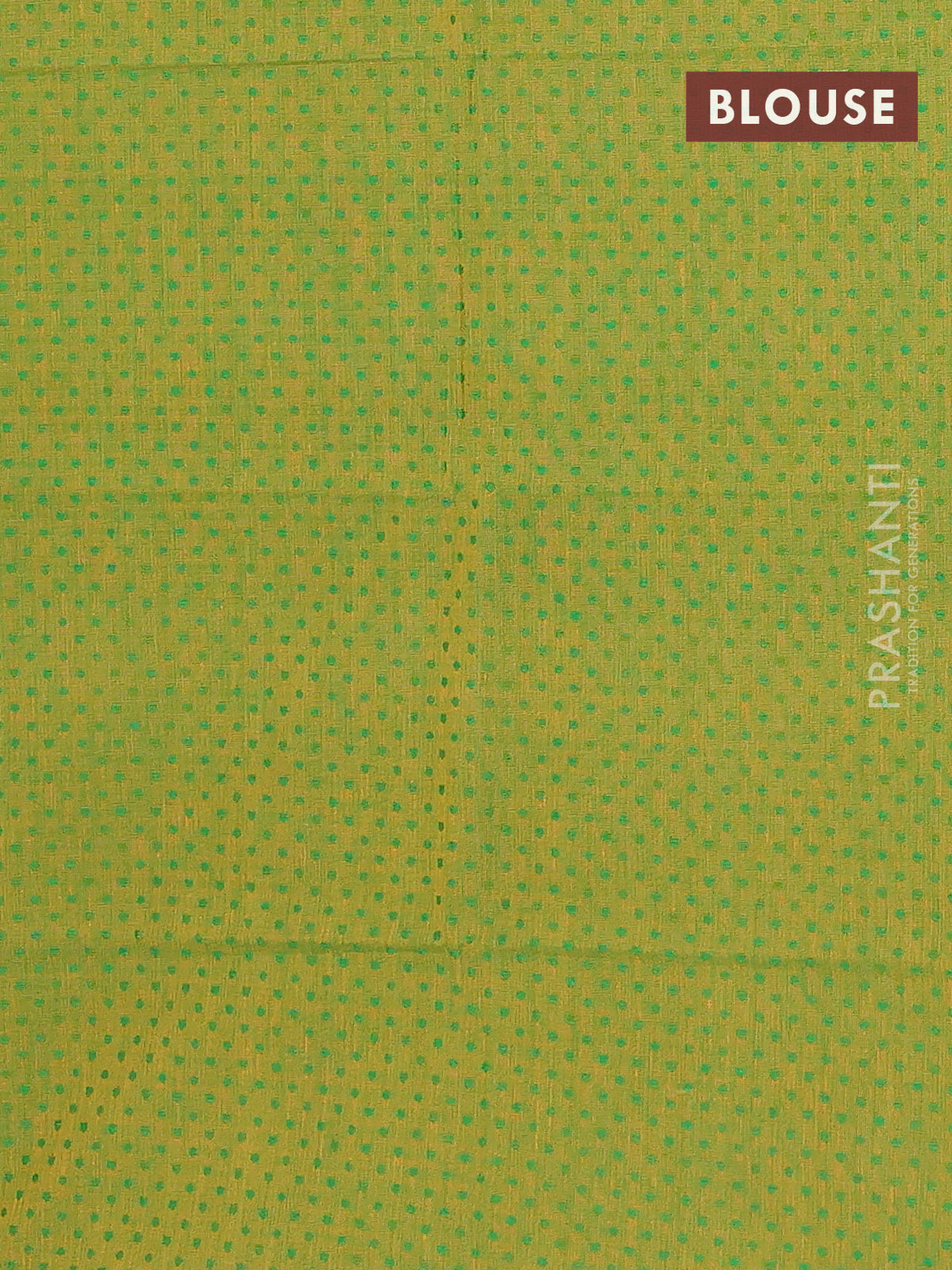 Chettinad cotton saree dual shade of musatrd and green with allover small checked pattern and zari woven border