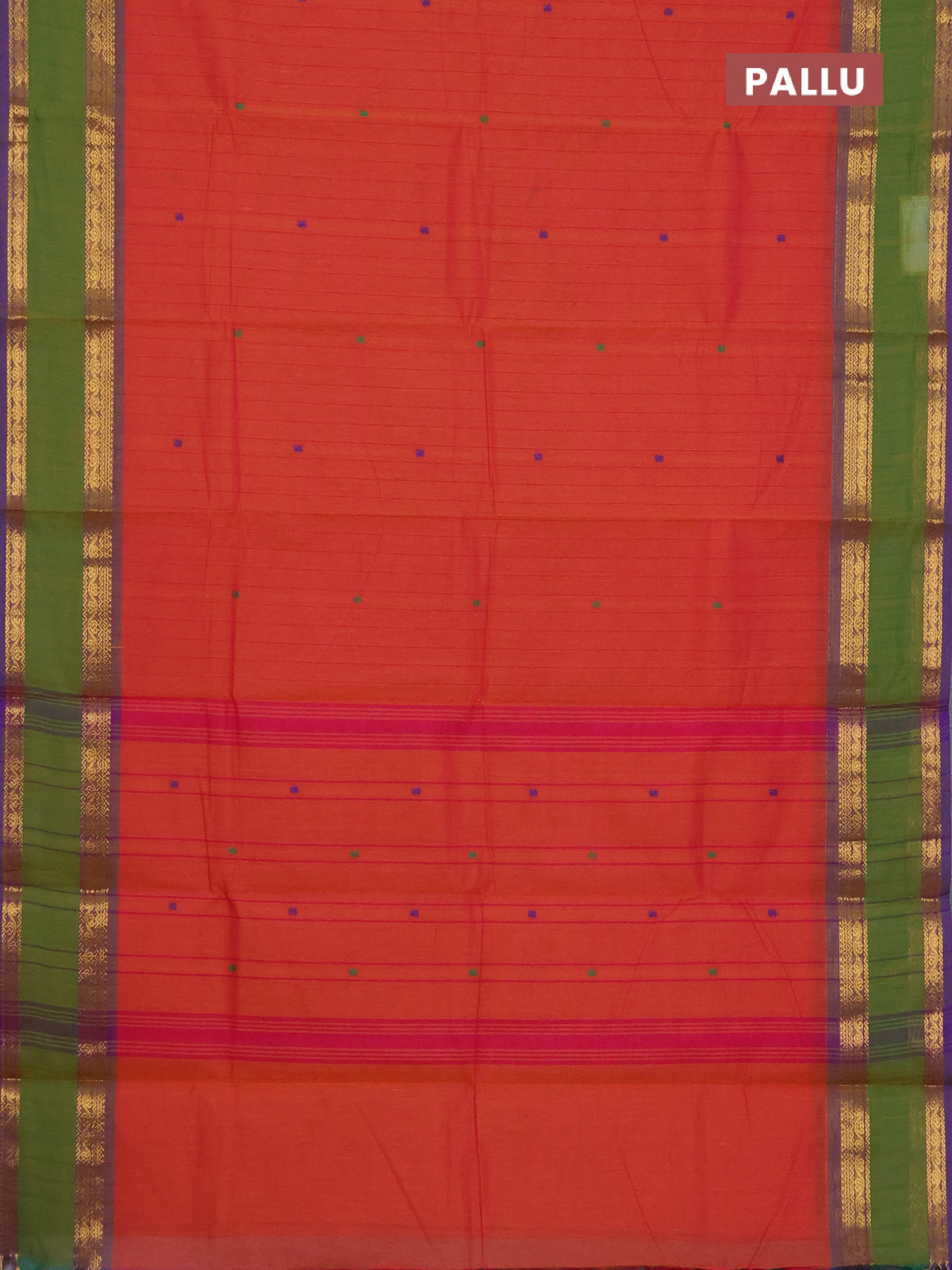 Chettinad cotton saree dual shade of orange and green with allover checked pattern and rattapet zari woven border