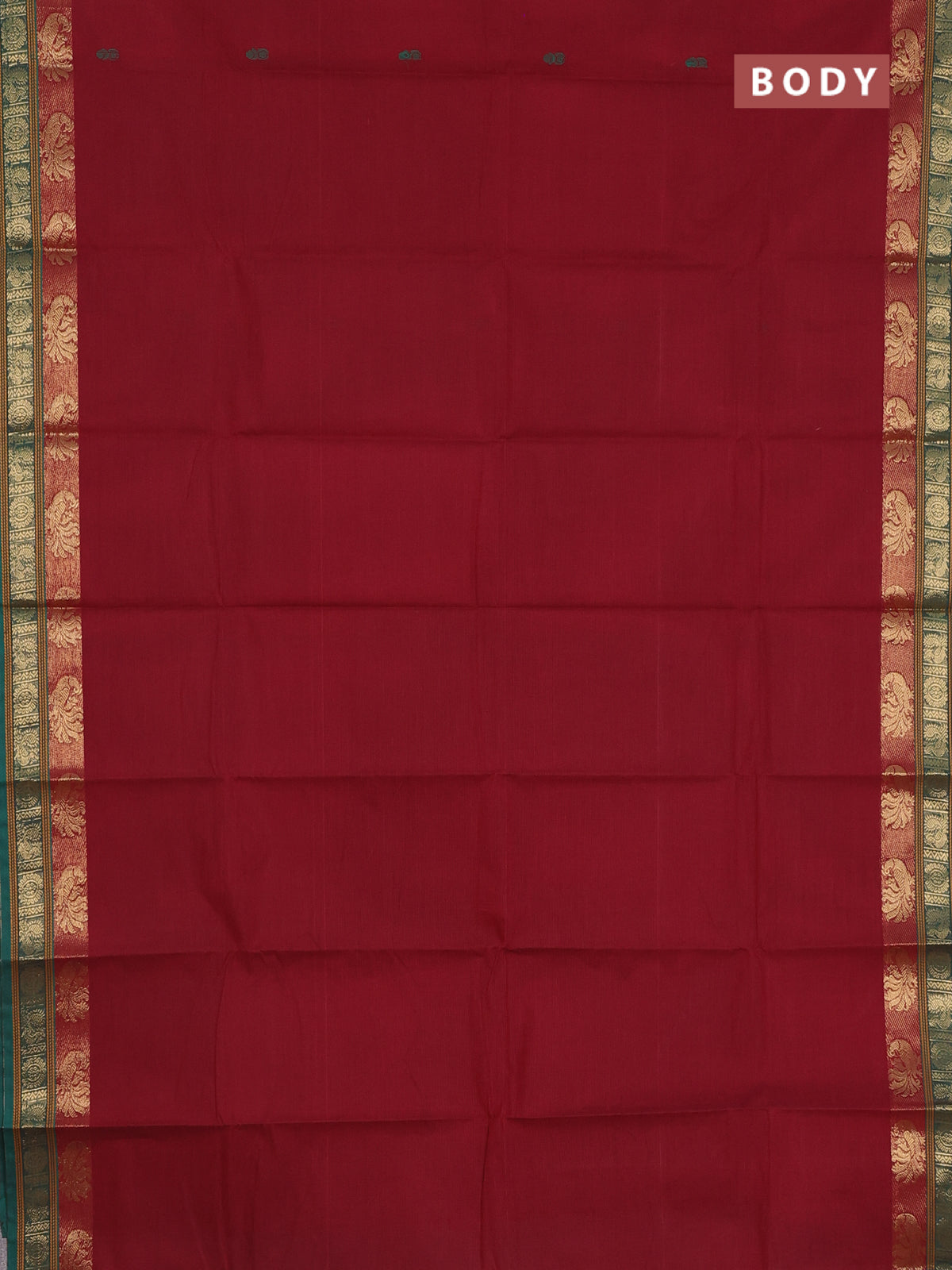 Chettinad cotton saree maroon and green with thread woven buttas and zari woven border