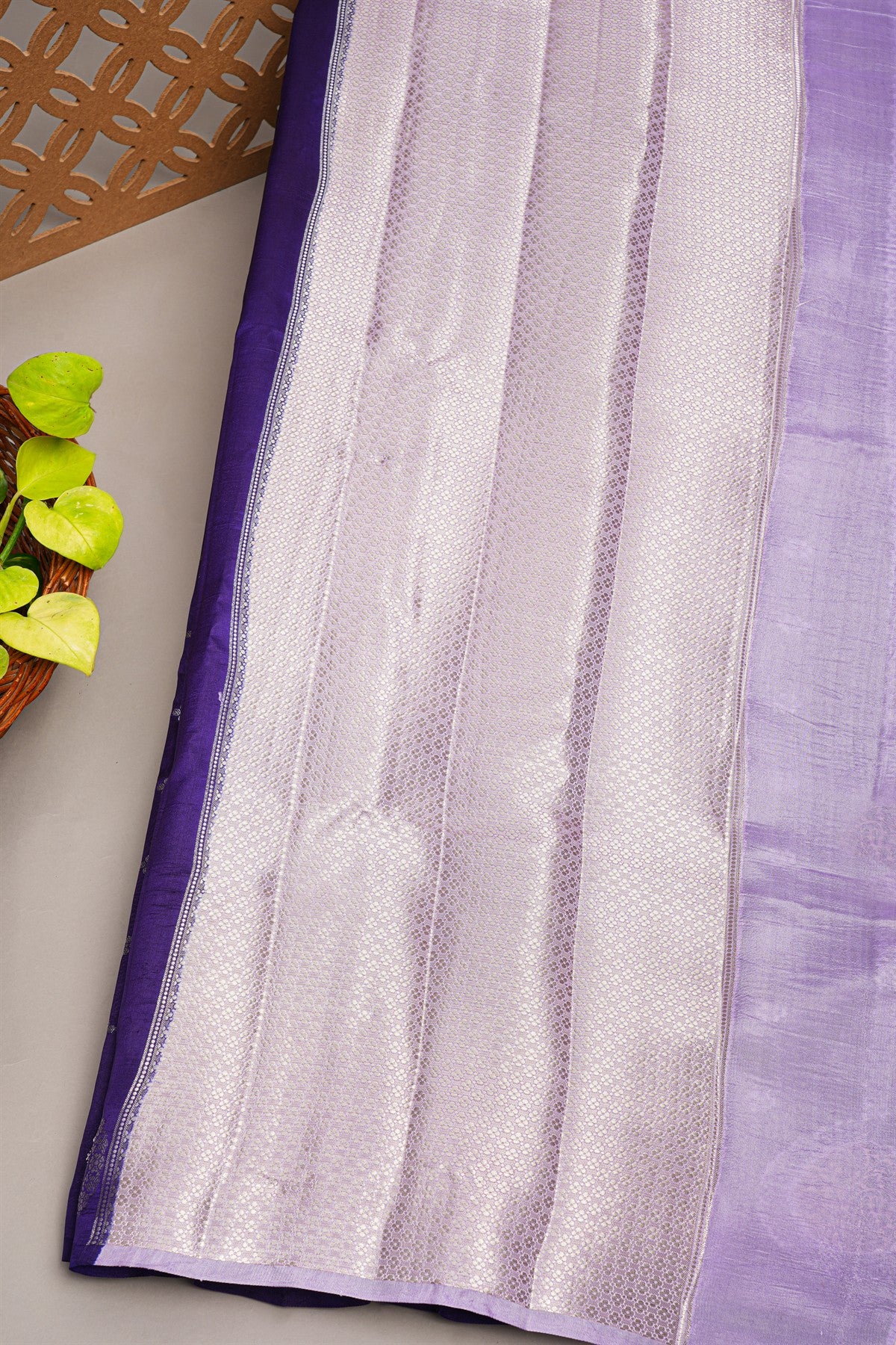 Embrace your spiritual self in this Chiniya Silk Navy Blue Saree. This goddess inspired saree is tastefully adorned with florals in lines. The contrast border decorated with florals and paisleys in circles resonates the essence of culture. The grand brocade pallu and the regal contrast with border blouse puts together an eclectic ensemble.