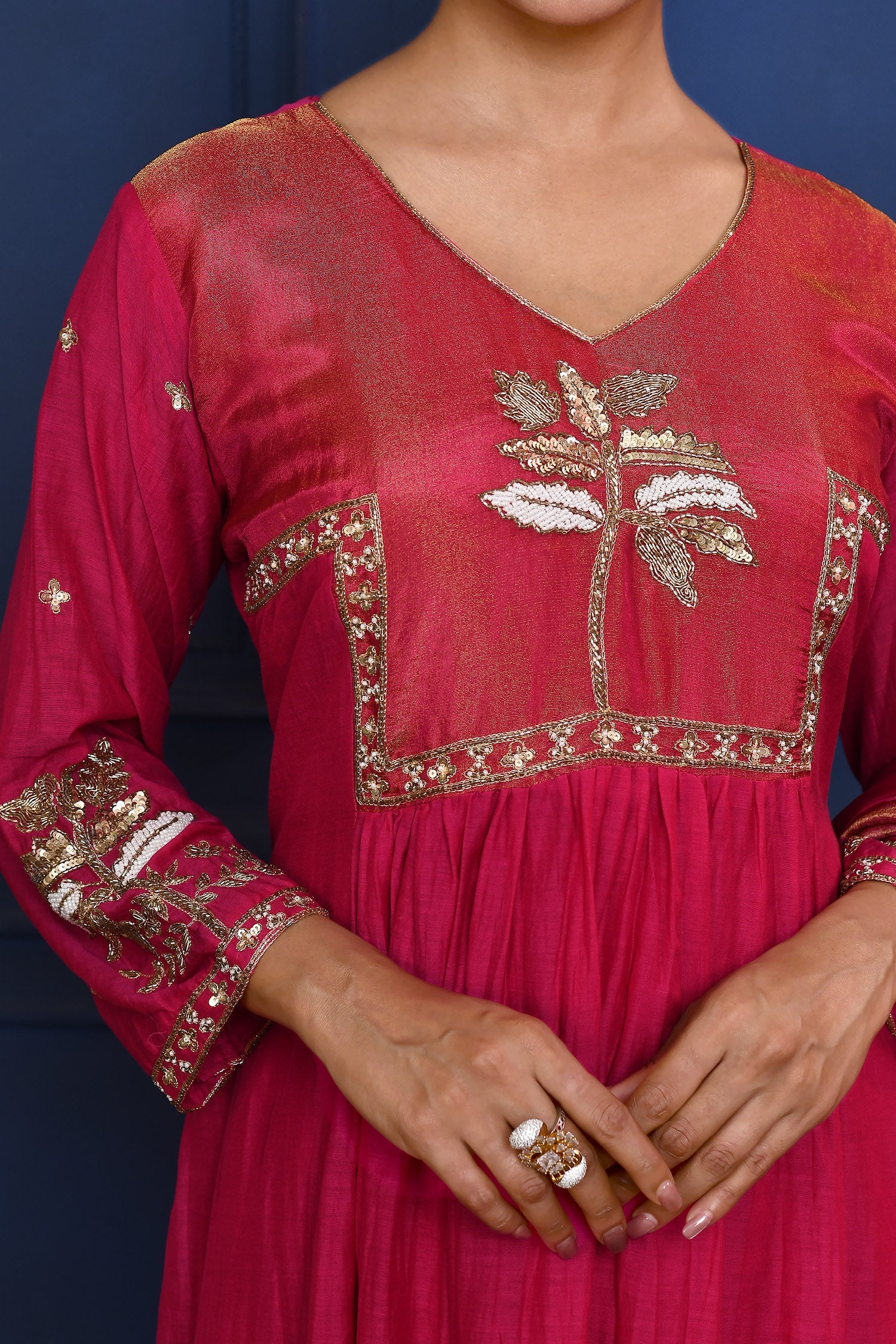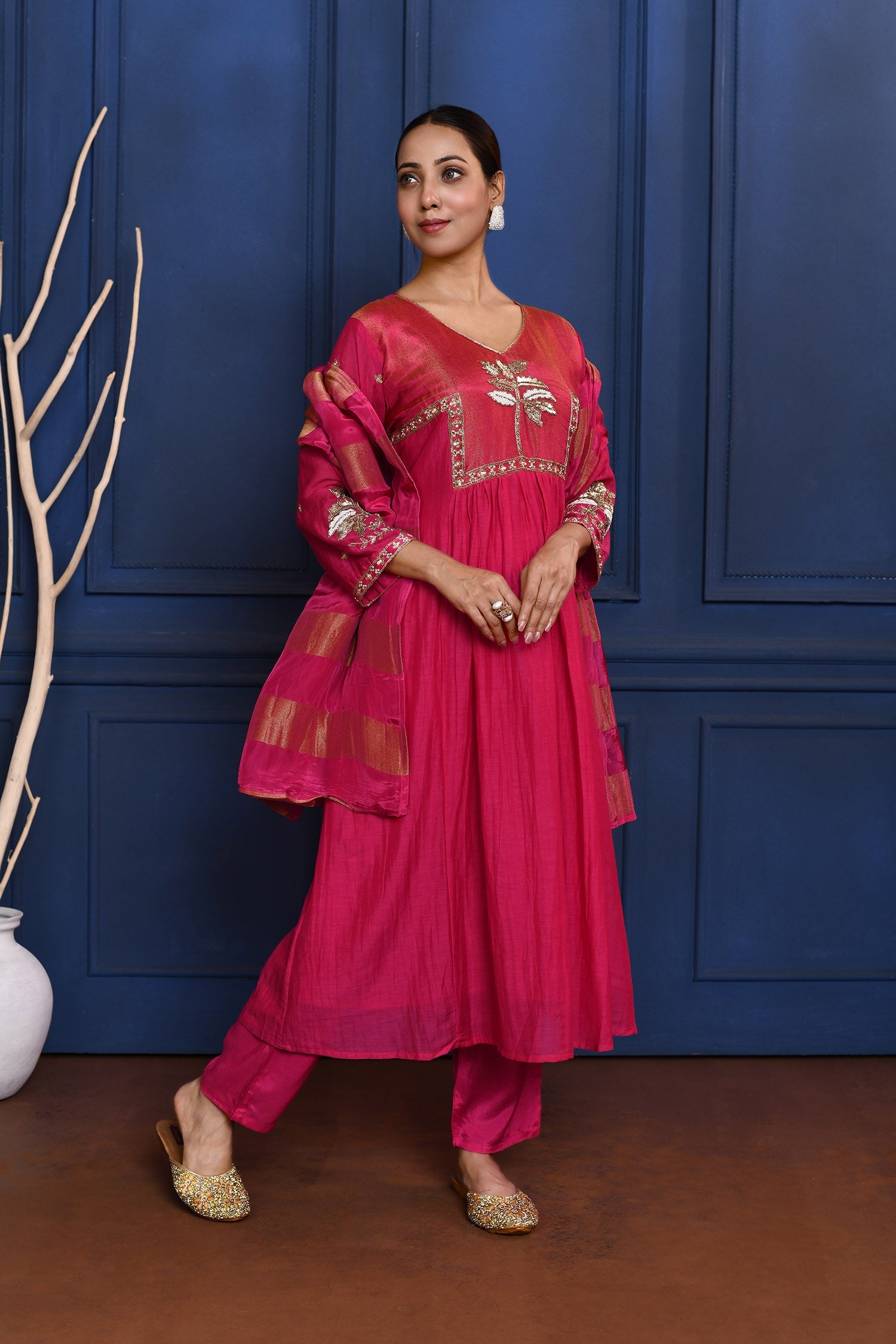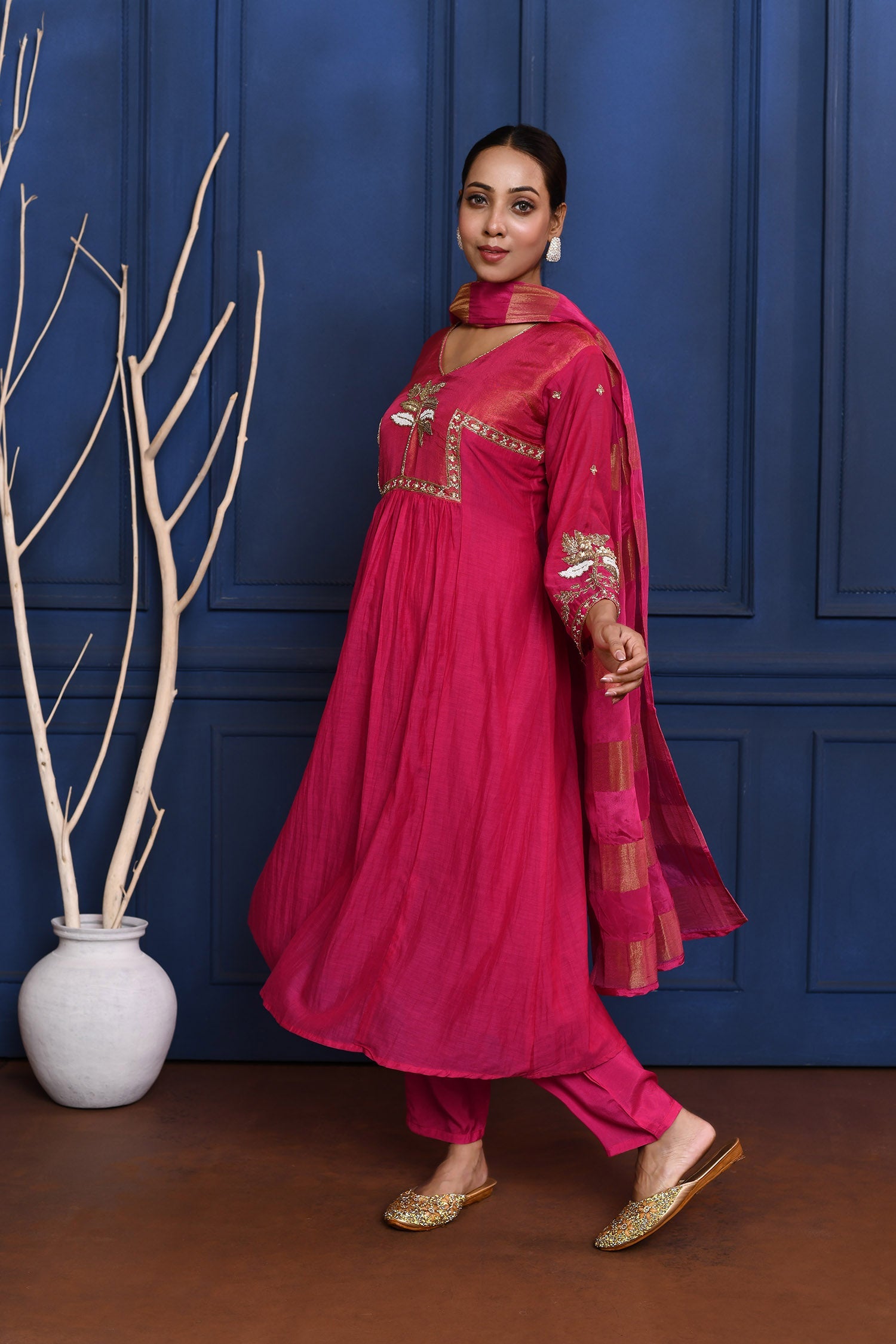 Classic Pink Floral Embroidered Silk Anarkali Set