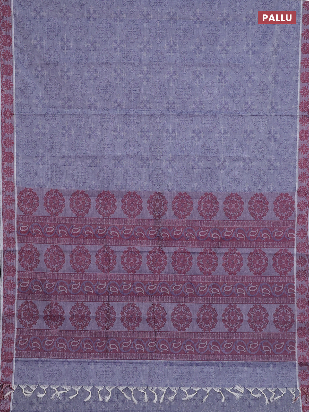 Coimbatore cotton saree greyish blue and maroon with allover self emboss and thread woven border