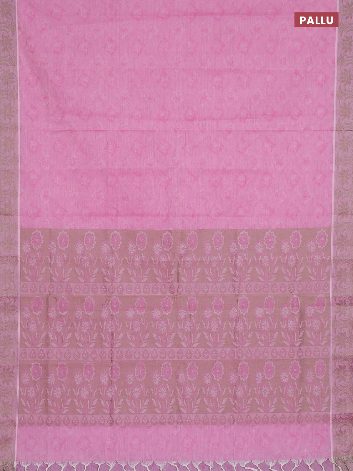 Coimbatore cotton saree light pink and beige with allover self emboss and thread woven border