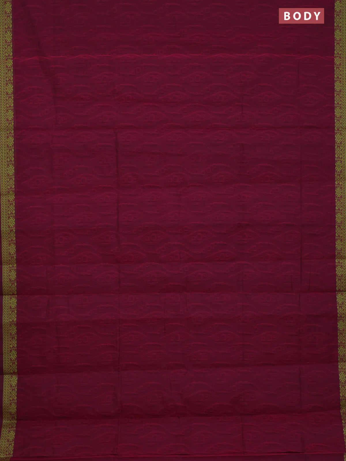 Coimbatore cotton saree magenta pink and light green with allover self emboss and thread woven border