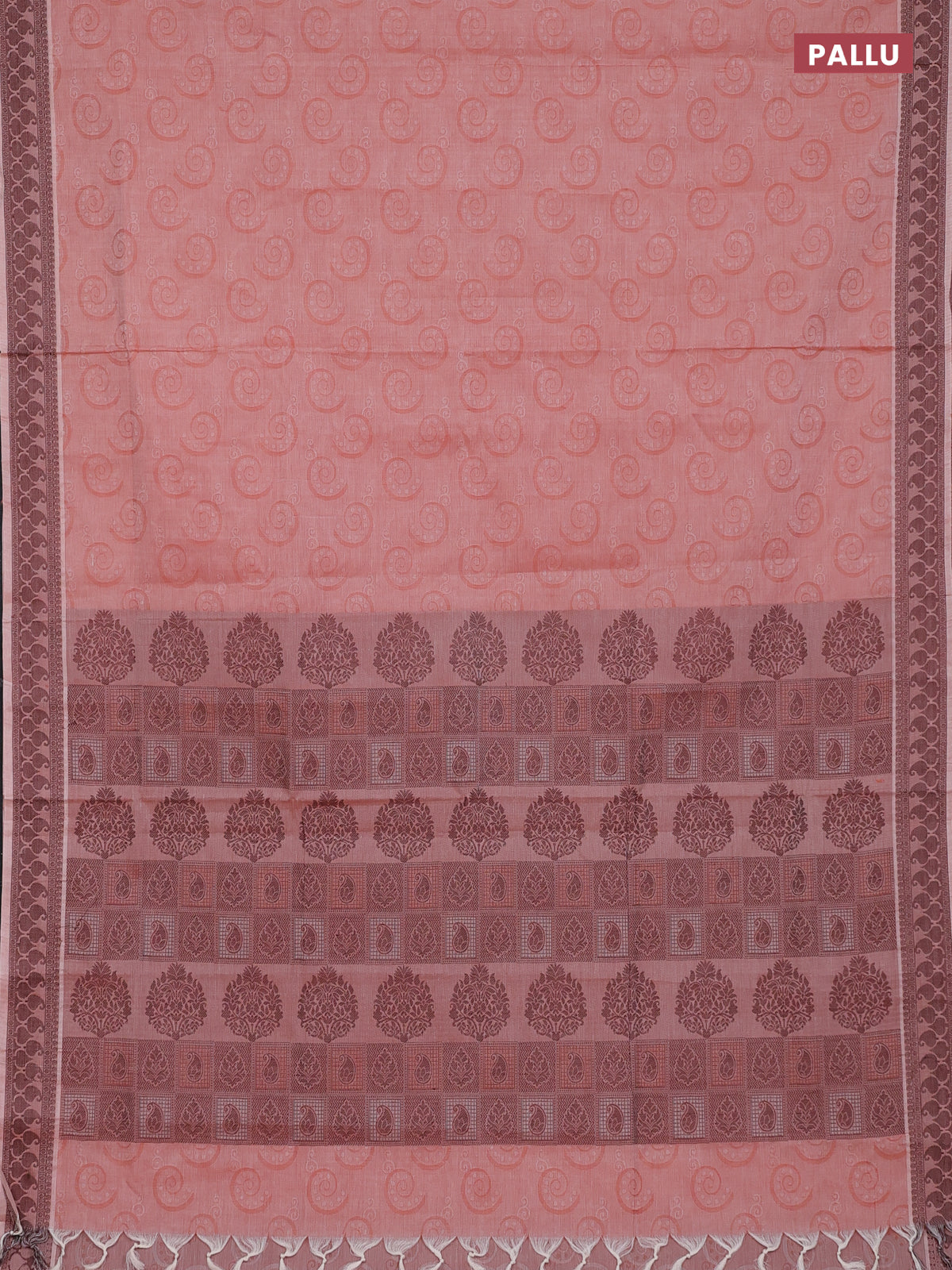 Coimbatore cotton saree rust shade and coffee brown with allover self emboss and thread woven border