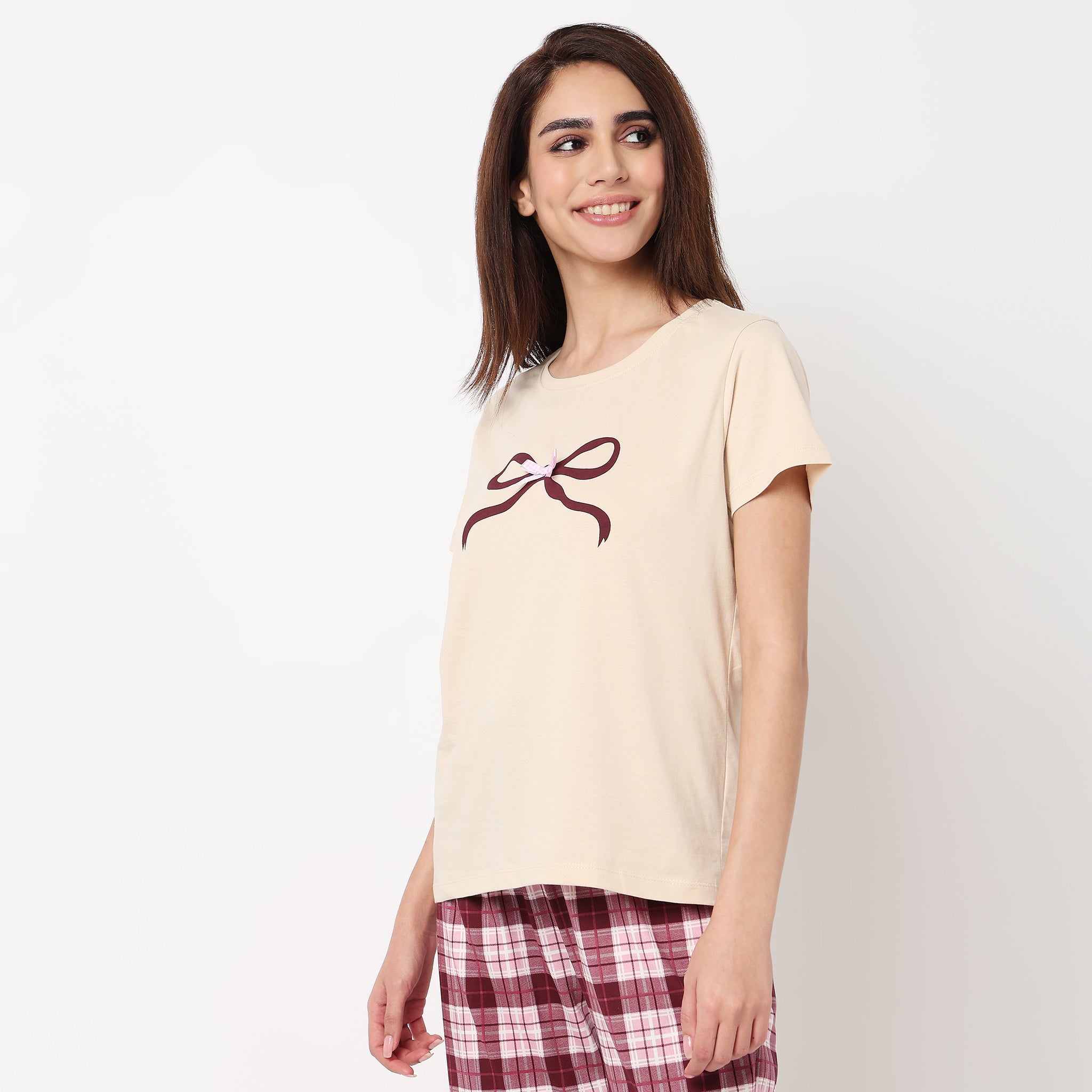 Discover comfort and style with our Cotton Printed Lounge T-Shirt, designed specifically for women who appreciate a casual yet chic look. Crafted from soft, breathable cotton, this tee is perfect for lounging or casual outings.