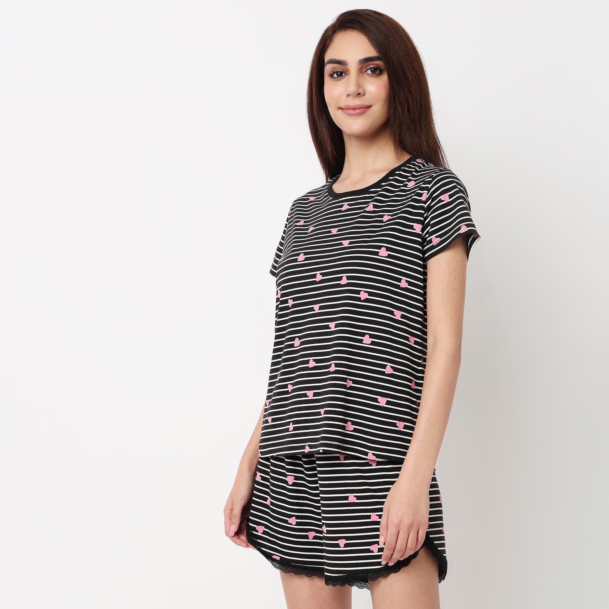 Introducing our Cotton Printed Lounge T-Shirt, designed for women who appreciate comfort and style. Crafted from soft cotton with a breathable knit weave, this t-shirt is perfect for lounging or casual outings.