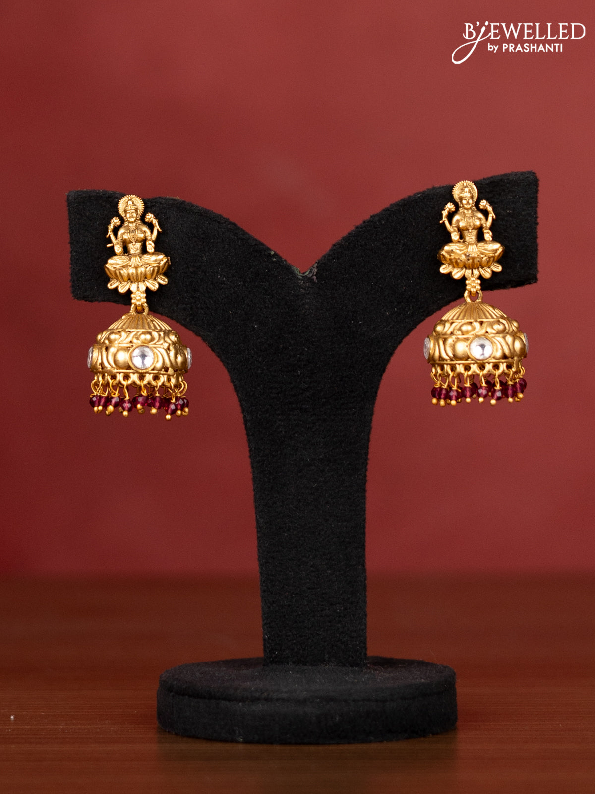 Crystal beaded maroon necklace with cz & pink kemp stone antique lakshmi pendant