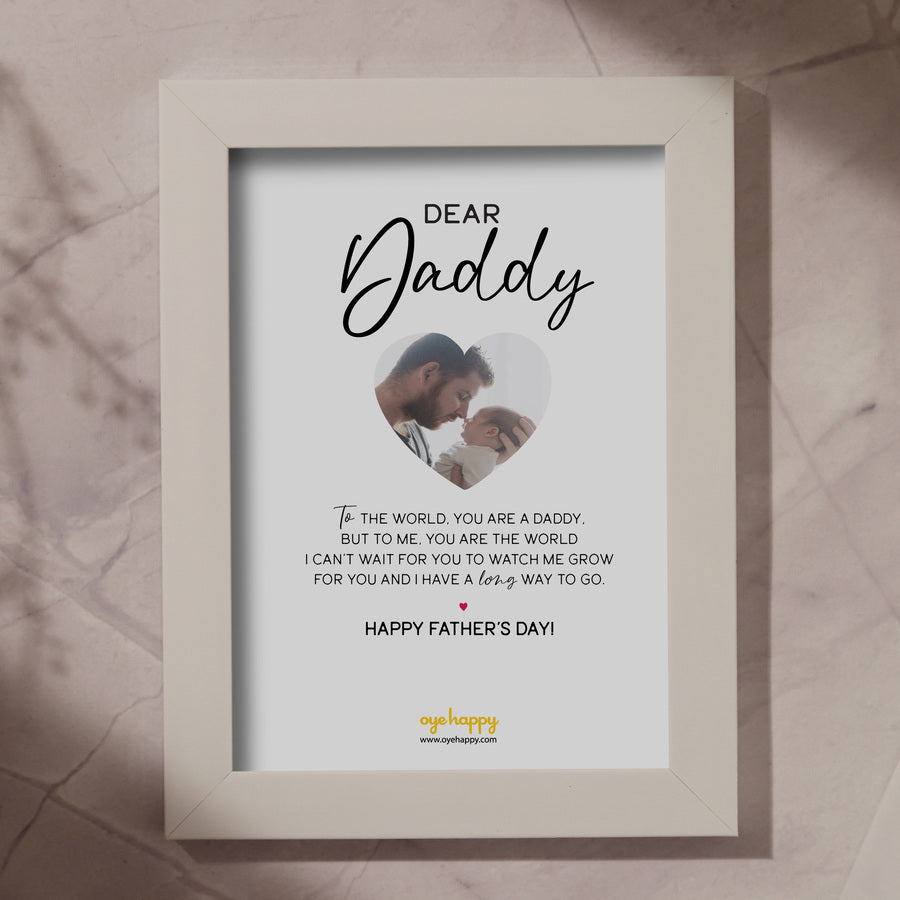 The frame holds a sweet message from the baby and is customisable with a cute photo of the baby and it's daddy.
