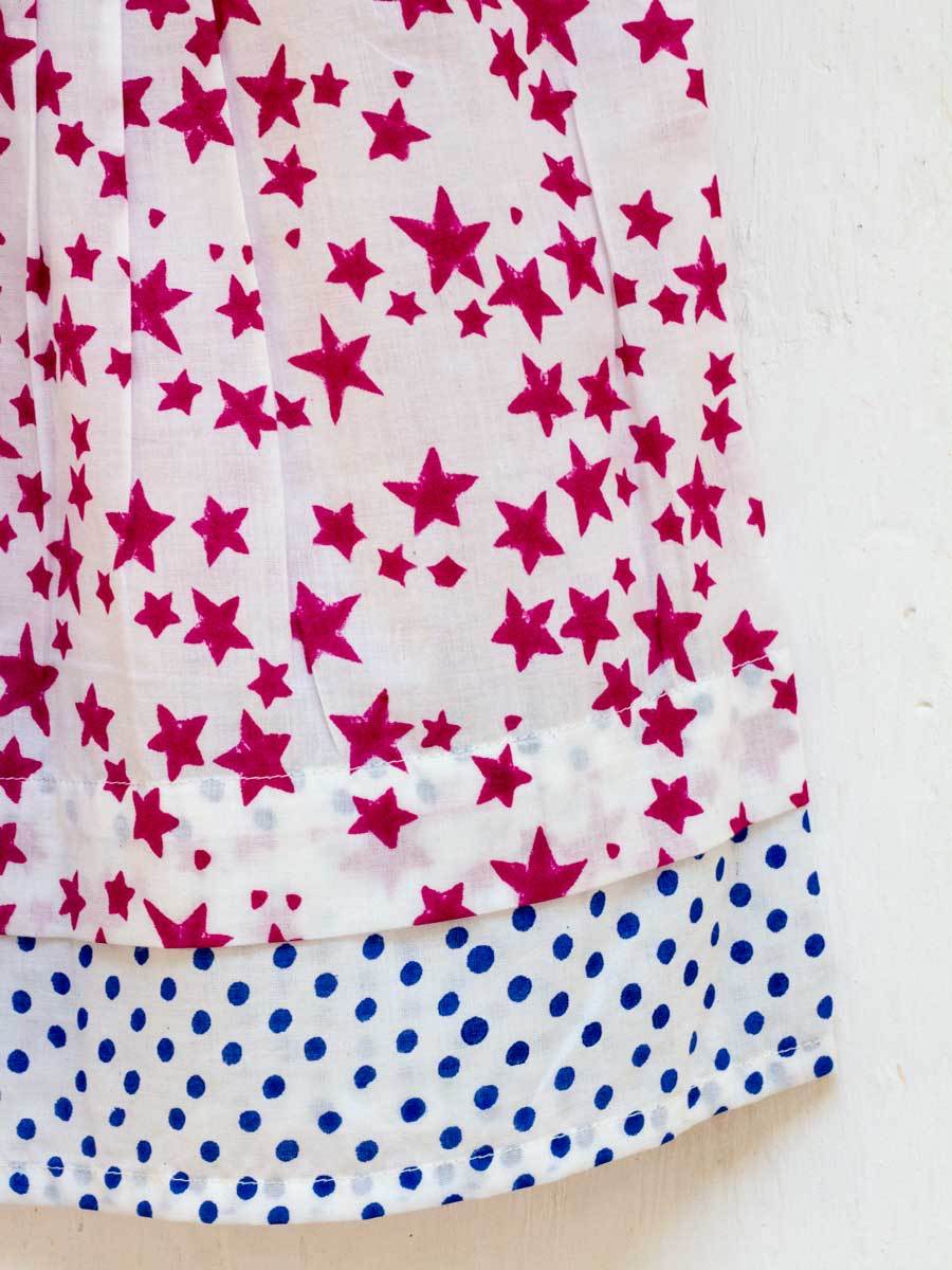 Deep Pink Starry Sky PinTuck Block Printed Cotton Frock