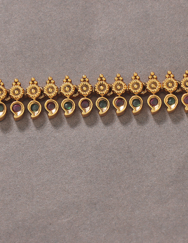 Delicately designed with CZ stones, this chic and ethnic chain Vaddanam adds a touch of elegance to any outfit. Perfectly pairs with a variety of styles, unleash your creativity with this hip belt.