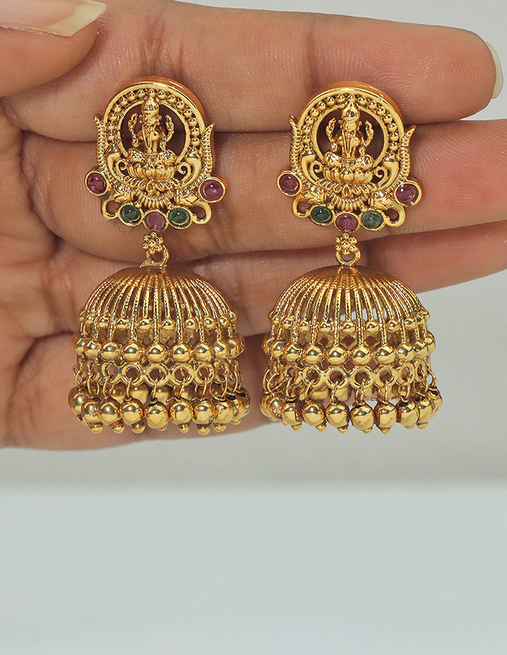 Designer Matt Kempu Temple Design Lakshmi Devi Jhumka Earrings