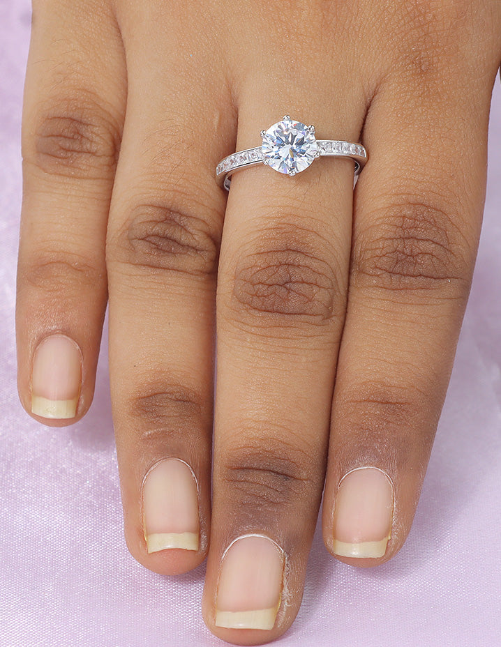 Shine like the star you are! The Solitaire Adjustable Ring features a brilliant round-cut stone on a sleek band with delicate side accents — pure sparkle, pure elegance.