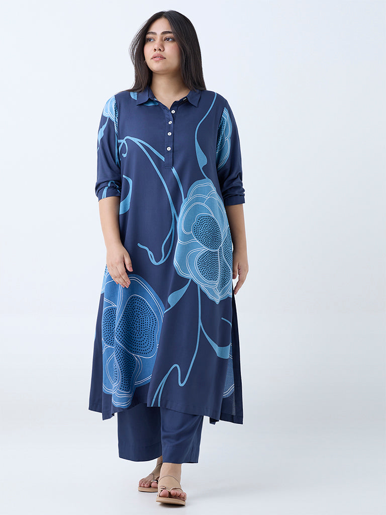 Diza Navy Floral Design A-Line Kurta