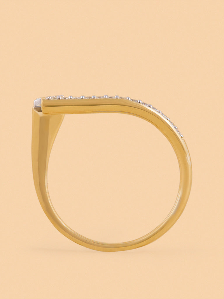 Stand out with this edgy lab diamond solitaire ring. Made in gold vermeil, it combines bold design with stunning brilliance for a striking statement.