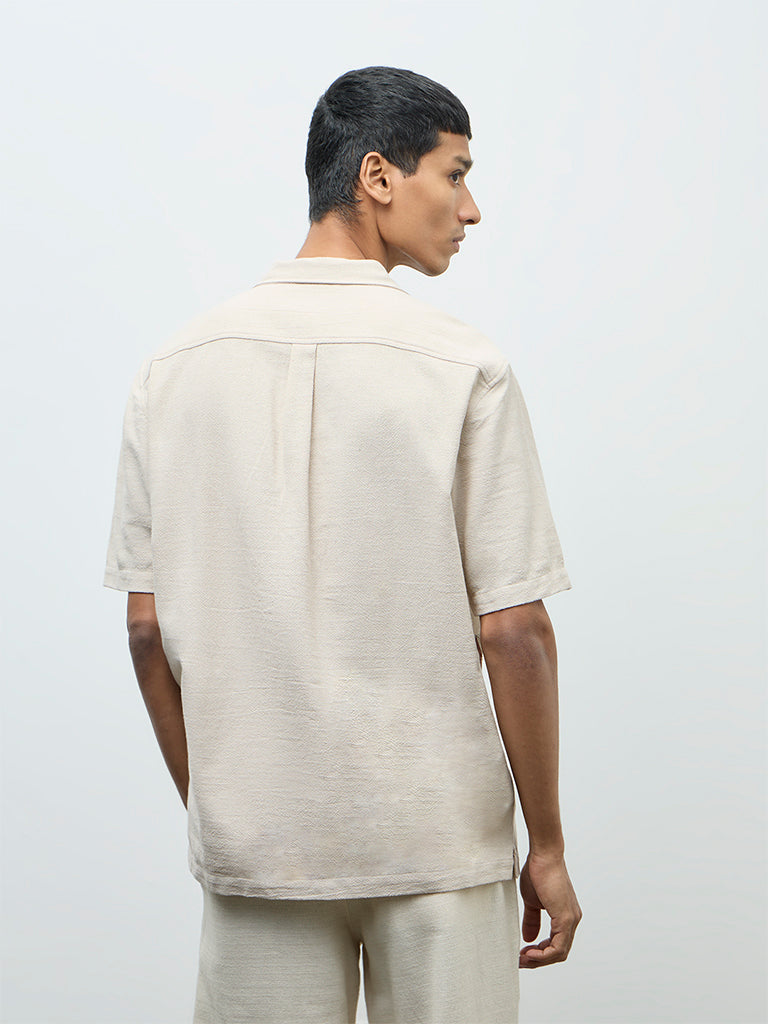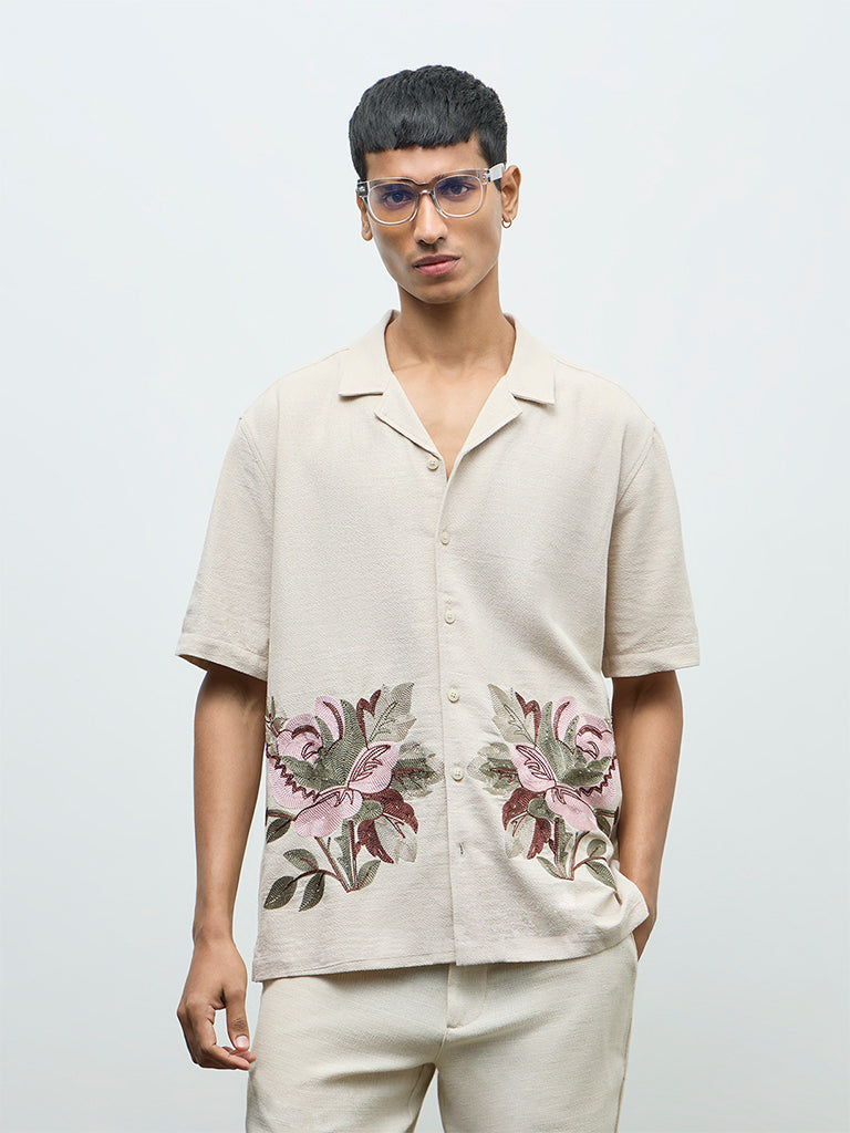 ETA Beige Floral Embroidered Relaxed-Fit Cotton Shirt